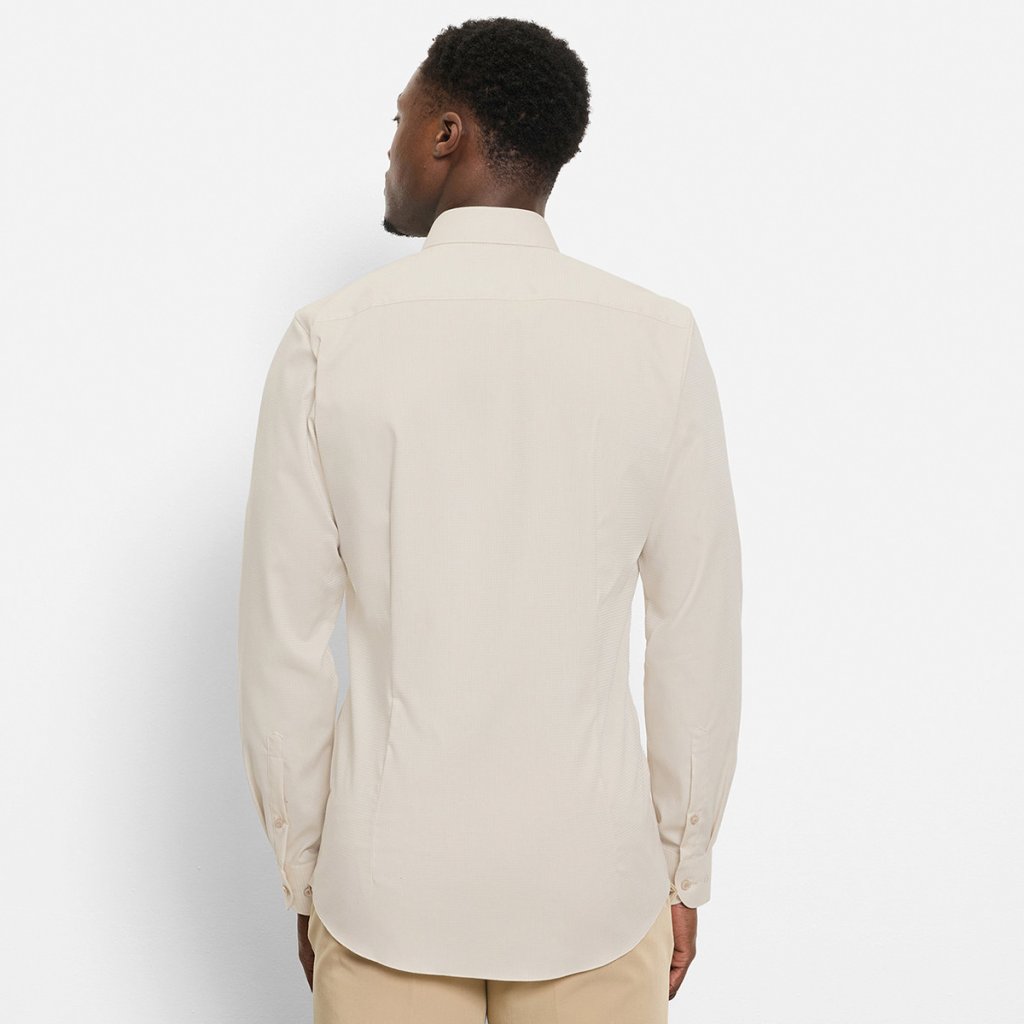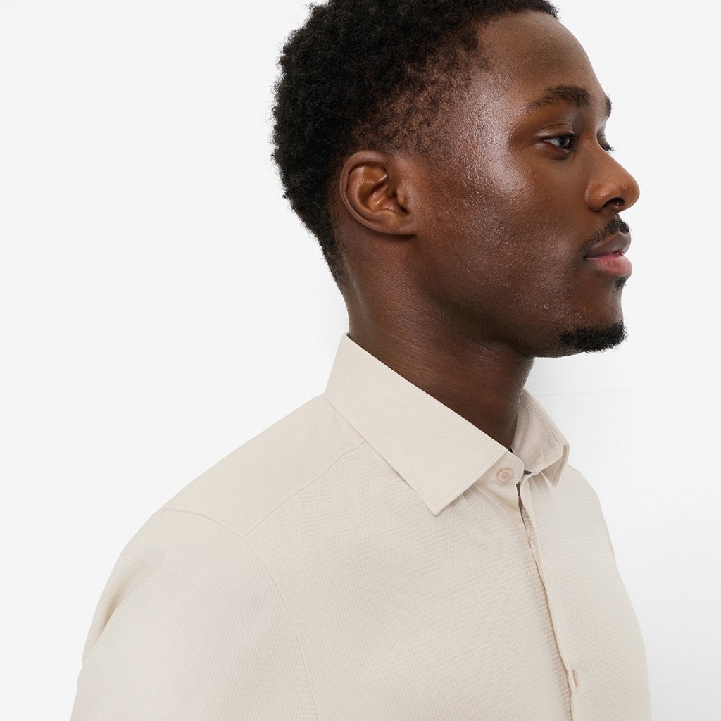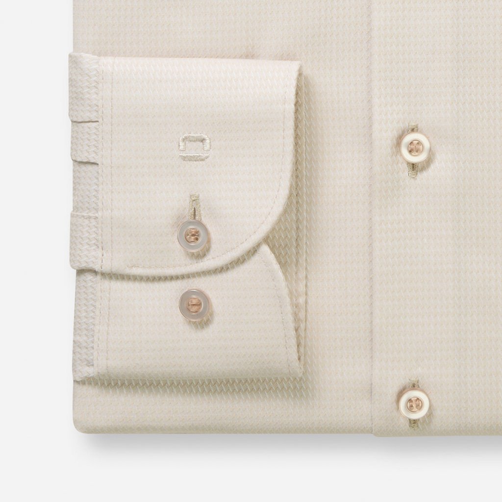 Košeľa OLYMP Level Five v béžovom odtieni predstavuje sofistikovanú alternatívu k tradičným farbám. Jemne štruktúrovaný povrch (faux-uni) dodáva materiálu decentnú hĺbku, vďaka čomu košeľa pôsobí mimoriadne upravene a vkusne. Strih Body Fit je navrhnutý pre mužov s atletickou postavou, ktorým zabezpečuje ostro rezanú siluetu, zatiaľ čo elastická bavlnená zmes zabezpečuje maximálnu voľnosť pri každom pohybe.