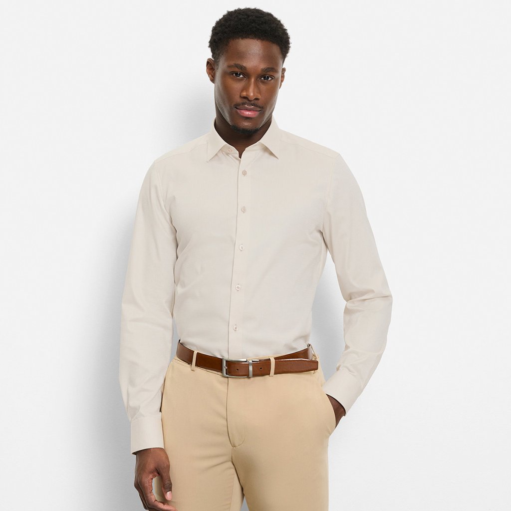 Béžová farba je mimoriadne univerzálna a skvele funguje v tón v tóne outfitoch. Kombinujte ju s hnedými alebo béžévými chinos nohavicami pre uvoľnený biznis vzhľad. Pre formálnejší dojem ju doplňte tmavomodrým oblekom – béžová košeľa dodá celkovému outfitu jemnosť a eleganciu, ktorú biela košeľa nedosiahne.