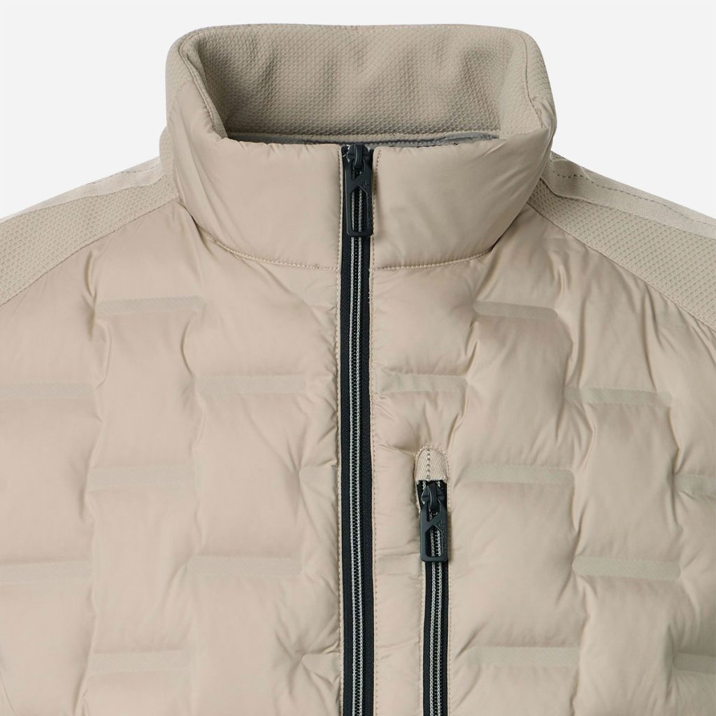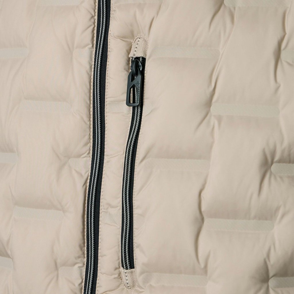 Vesta CASAMODA je vybavená štyrmi praktickými vreckami: dvomi bočnými vreckami na zips pre bezpečné uloženie vecí a dvomi náprsnými vreckami (z toho 1 vnútorné), ktoré podčiarkujú jej funkčný charakter. Vysoký stojatý golier plní dôležitú úlohu – chráni vás pred nepríjemným prievanom počas mestských prechádzok alebo cestovania.