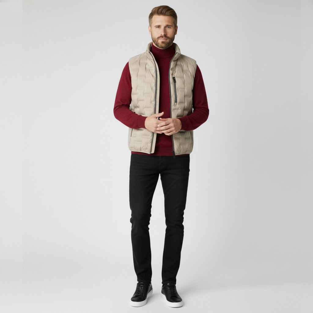 Pre uvoľnený víkendový štýl ju skombinujte s tmavomodrými džínsami a hnedou koženou obuvou. Béžová farba výborne ladí aj s bielou, tmavozelenou alebo burgundskou, čo vám dáva takmer nekonečné možnosti vrstvenia. Či už idete na výlet do mesta alebo len do kancelárie, táto vesta bude vaším najuniverzálnejším spoločníkom.
