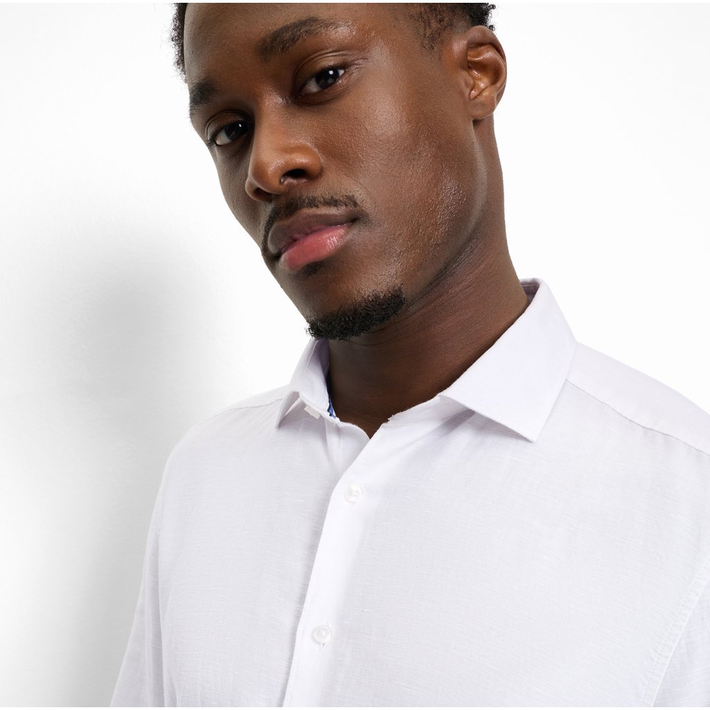 Doprajte si pocit ľahkosti bez straty elegancie. Táto biela košeľa OLYMP Level Five spája prirodzenú štruktúru ľanu s jemnosťou bavlny v modernom twille. Vďaka špeciálnej úprave garment washed pôsobí materiál uvoľnene a je mimoriadne príjemný na dotyk. Strih Body Fit dokonale zvýrazňuje mužskú siluetu, zatiaľ čo klasický golier Kent zaručuje čistý a uprataný vzhľad pre každú príležitosť.