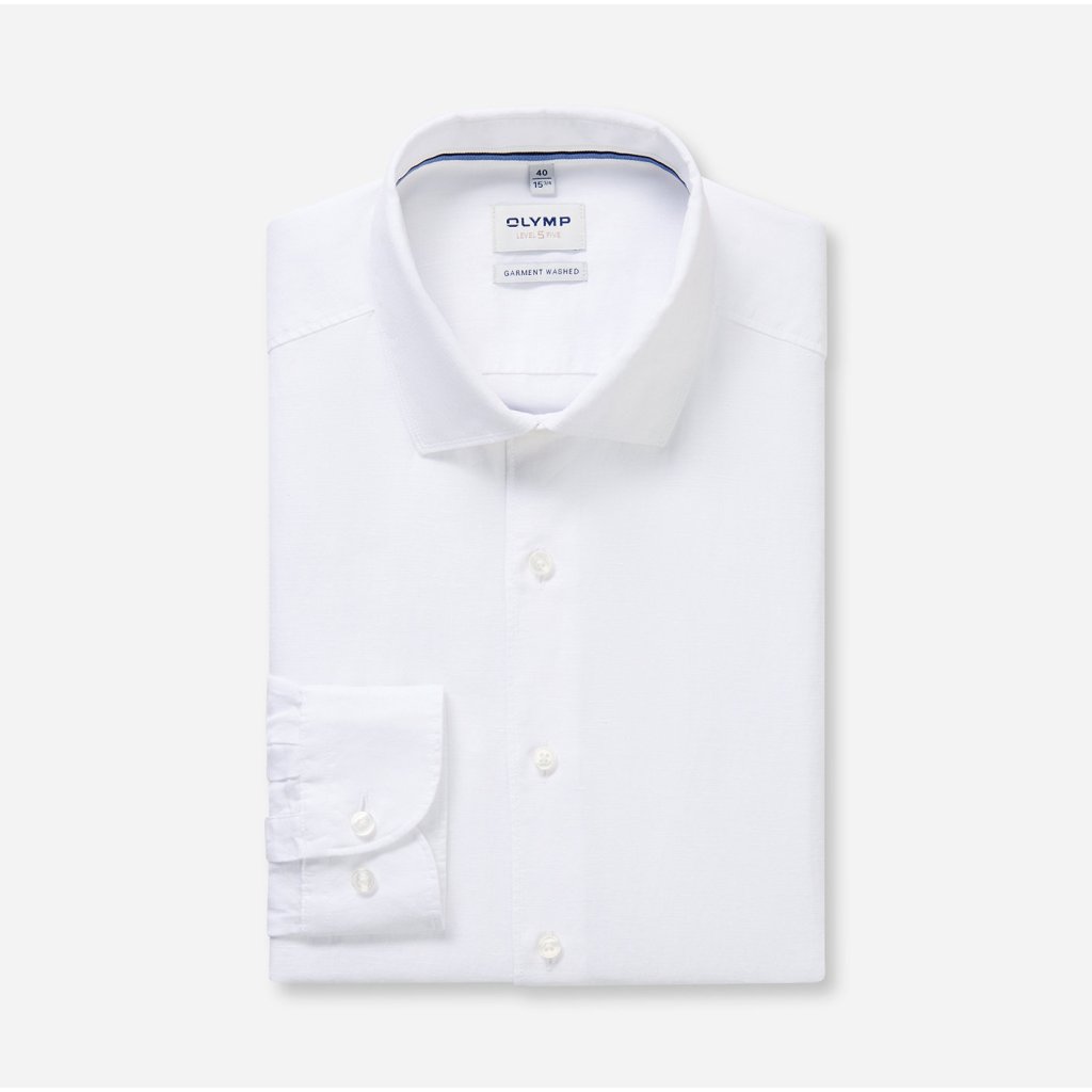 Pánska biela košeľa OLYMP Level Five zo zmesi ľanu a bavlny
