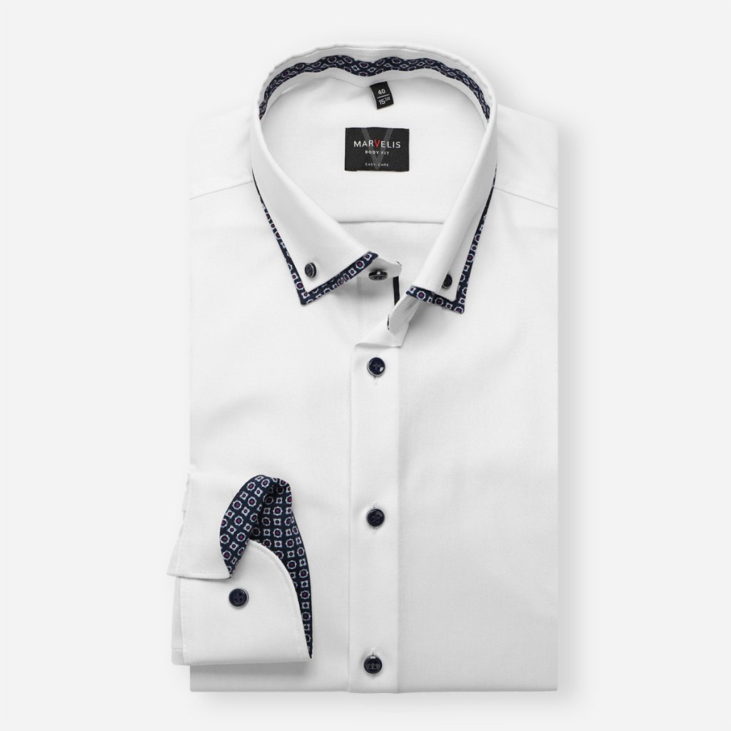 Bežné košele bývajú príliš voľné alebo sa po krátkom nosení pokrčia. Táto košeľa od Marvelis rieši oba problémy strihom Body Fit a úpravou easy care.