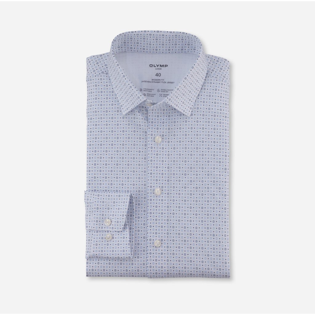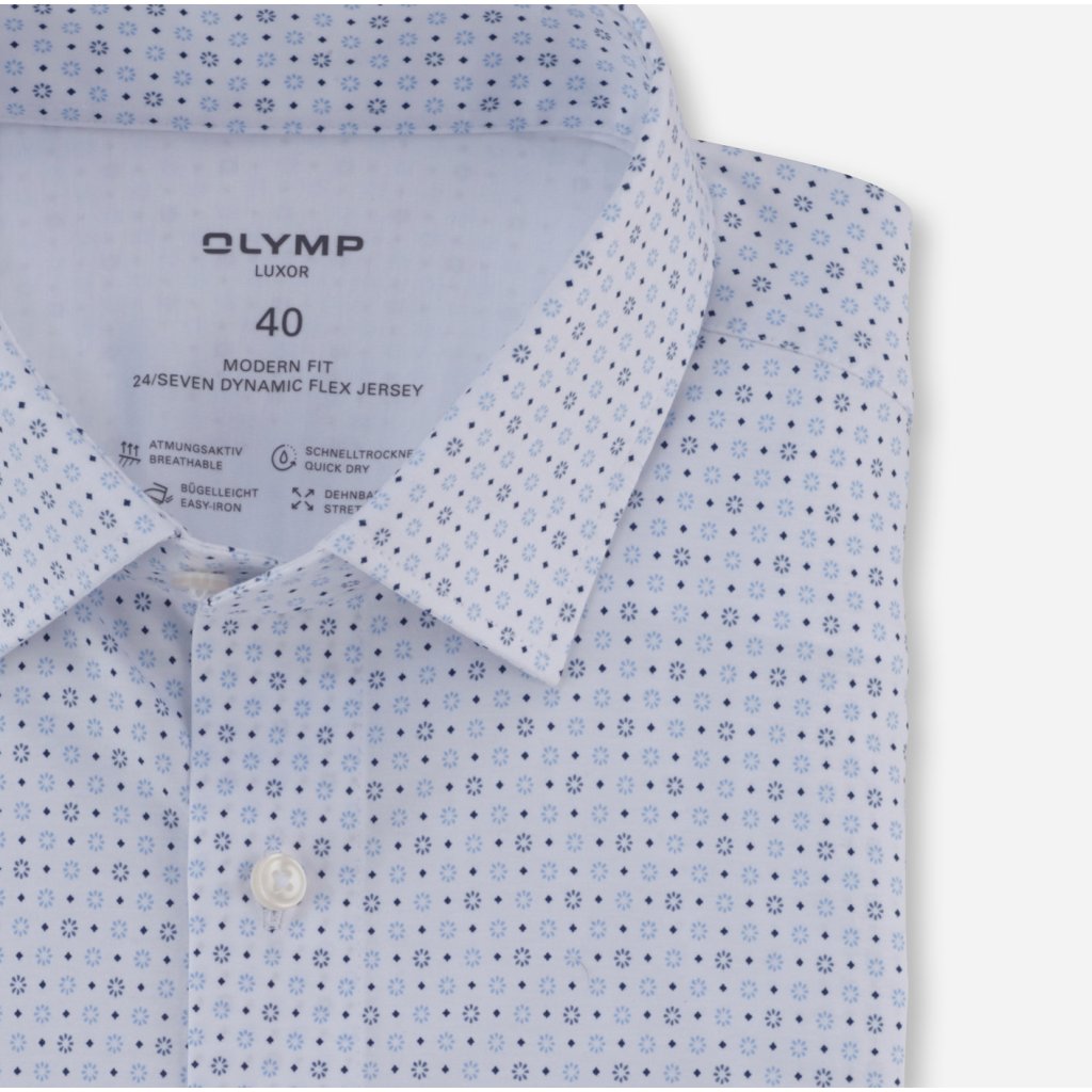 Táto biela pánska košeľa s jemným modrým vzorom od značky OLYMP je ideálnou voľbou pre mužov, ktorí hľadajú spojenie elegancie a komfortu. Model Luxor 24/Seven Modern Fit ponúka nielen sofistikovaný vzhľad, ale aj maximálne pohodlie vďaka inovatívnemu materiálu. Košeľa je perfektnou voľbou na celodenné nosenie – či už do kancelárie, na obchodné rokovania alebo na spoločenské udalosti. Vďaka priedušnosti a elastickému materiálu sa v nej budete cítiť pohodlne aj po dlhom dni.