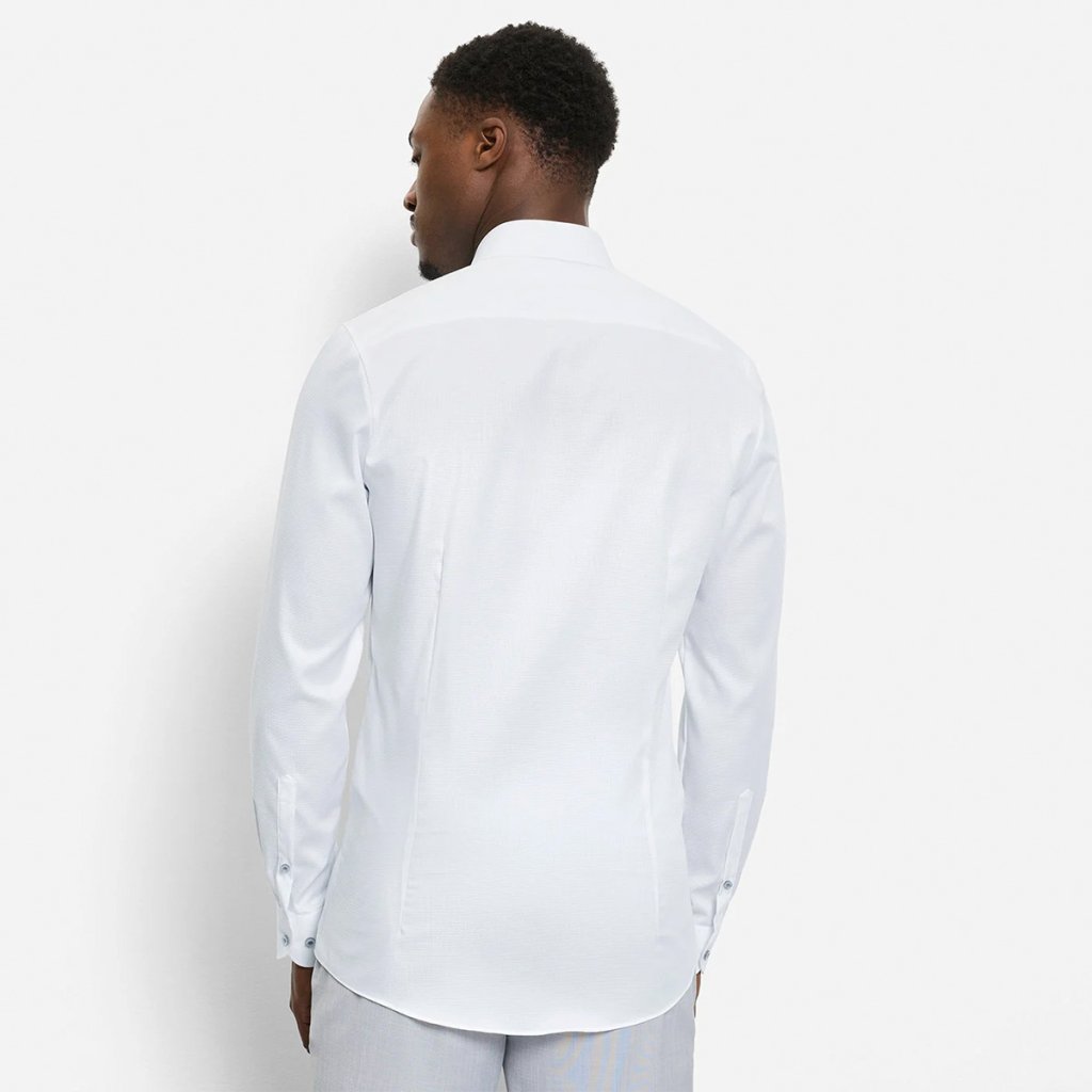 Táto košeľa je absolútnym základom, ktorý by mal mať každý muž. Vynikne pod akýmkoľvek oblekom – od tmavomodrej až po šedú alebo čiernu. Pre smart-casual outfit ju skombinujte s chinos nohavicami alebo kvalitnými džínsom, pričom jemná štruktúra materiálu ju odlíši od bežných základných košieľ.