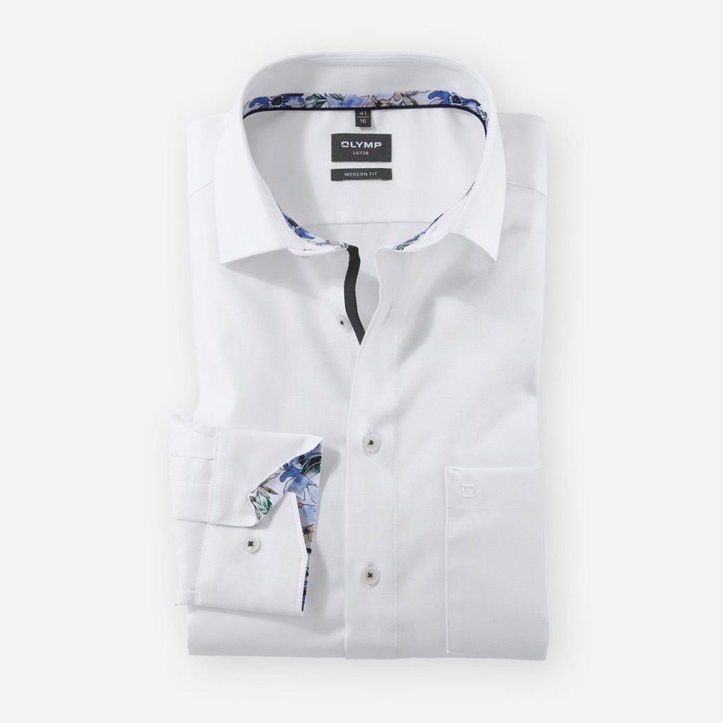 Pánska košeľa OLYMP Luxor v bielej farbe predstavuje ideálny základ šatníka pre každý pracovný deň. Je vyrobená zo 100 % bavlny a vďaka špeciálnemu spracovaniu ponúka nekrčivý a nežehlivý povrch, čo oceníte pri každodennom nosení aj na cestách.