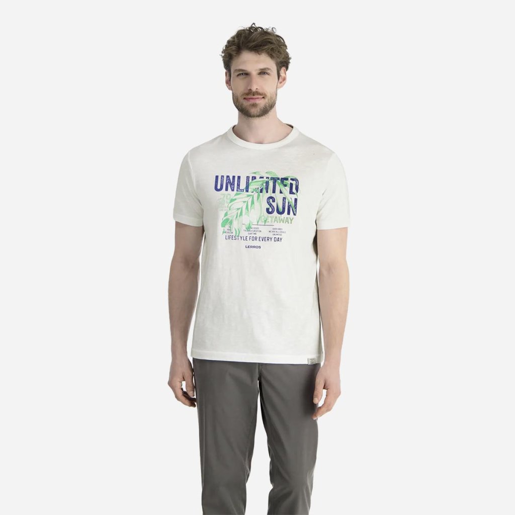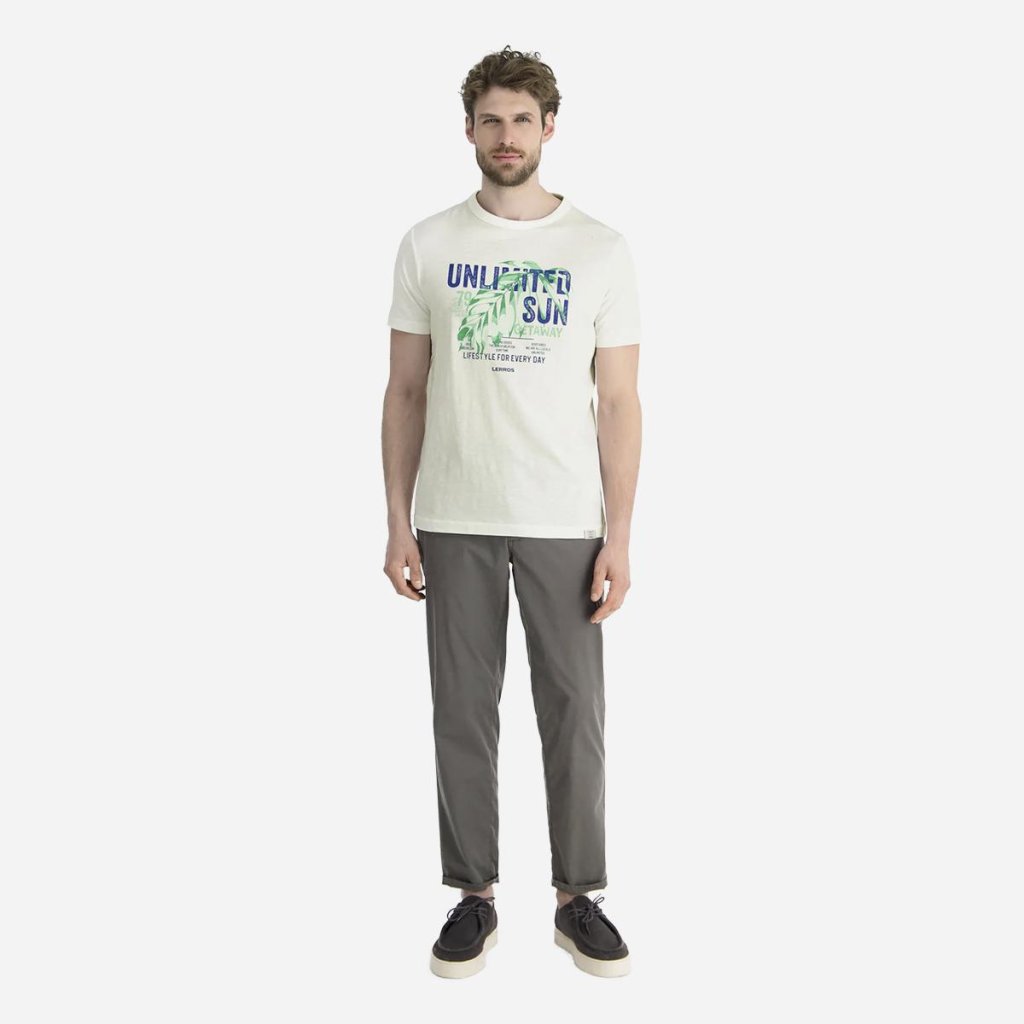 Hľadáte tričko, ktoré sa hodí ku každému ležérnemu outfitu? Toto biele pánske tričko LERROS s potlačou na hrudi je odpoveďou. Klasický voľnočasový dizajn, ktorý dodá osobitosť vášmu letnému, dovolenkovému štýlu.