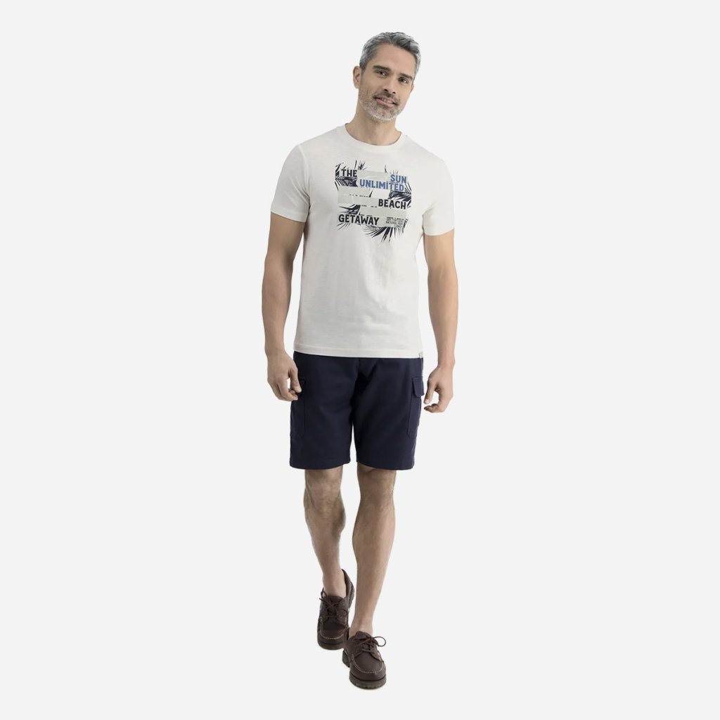 Moderný strih zabezpečí pohodlie, zatiaľ čo klasický okrúhly výstrih dopĺňa nadčasový vzhľad. Jemný plážový motív potlače navodí tú správnu náladu – nech ste kdekoľvek.
