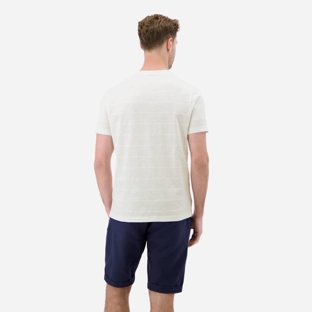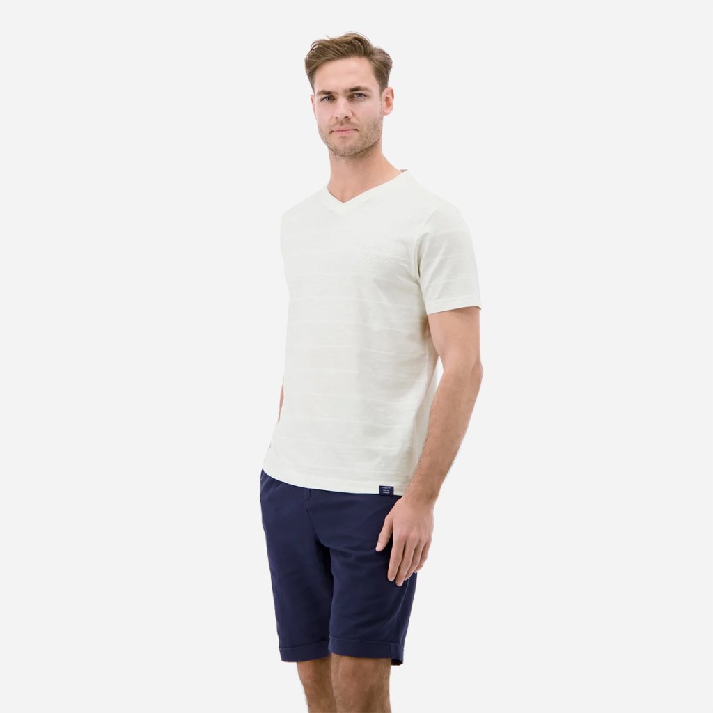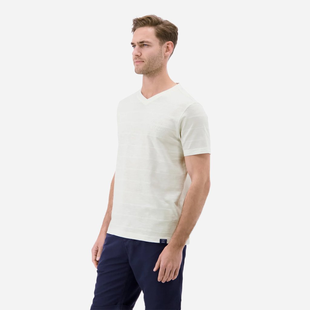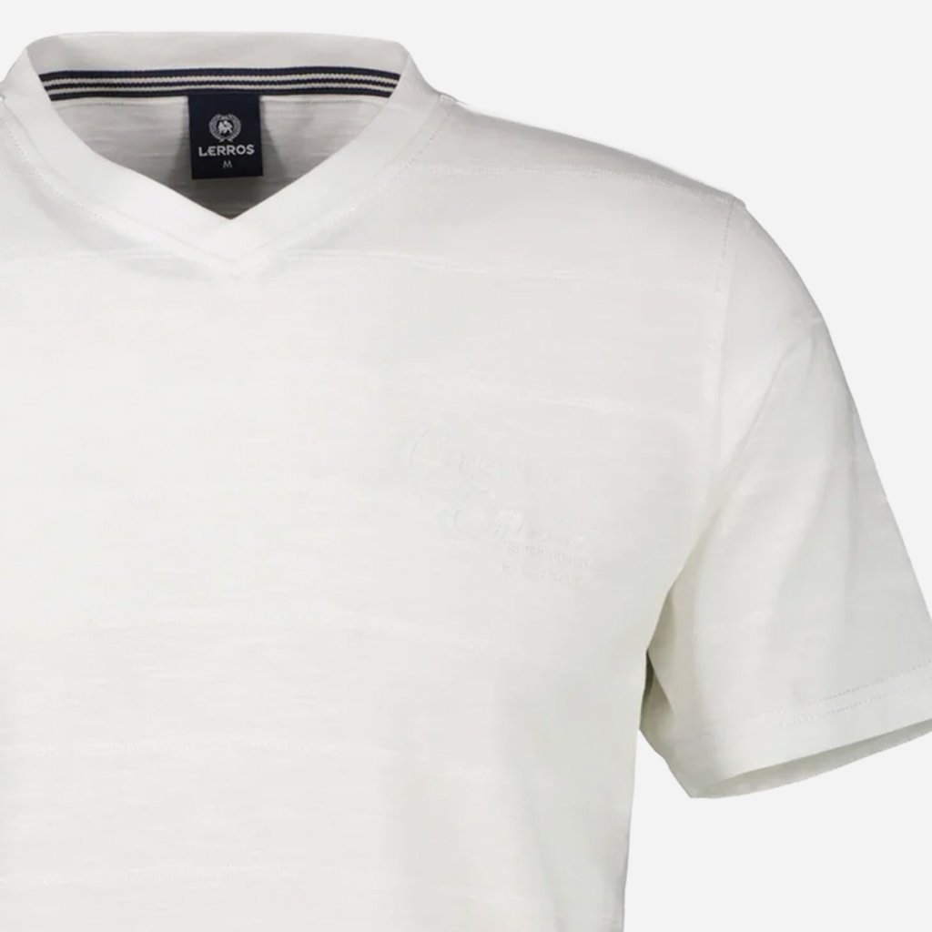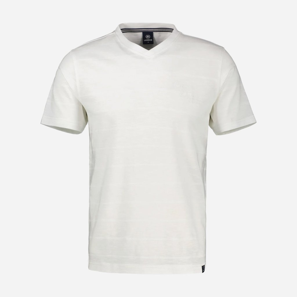 Prepracovaný dizajn s jemným prúžkovaným vzorom dodáva tričku hĺbku a eleganciu. Rebrovaný výstrih do tvaru V opticky predlžuje postavu a dodáva outfitu moderný punc. Celkový vzhľad dopĺňa vkusná potlač na hrudi, ktorá podčiarkuje ležérny charakter značky LERROS. Každý šev a detail svedčí o dôslednom spracovaní, ktoré zaručuje, že vám tento kúsok bude robiť radosť dlhú dobu.