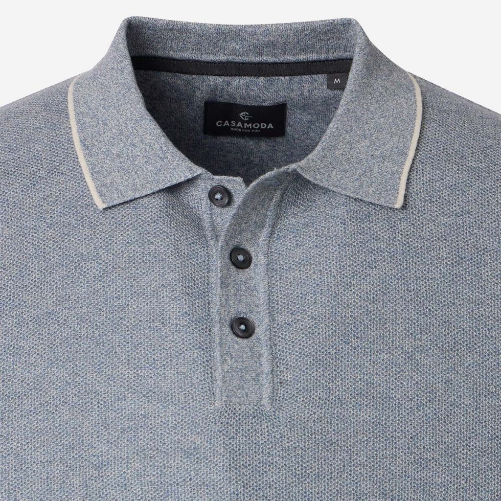 Posuňte svoj "smart casual" štýl na novú úroveň. Táto modrá polokošeľa CASAMODA s jemnou štruktúrou pleteniny ponúka sofistikovaný vzhľad a nevídaný komfort. Kontrastné detaily na golieri a léga s tromi gombíkmi z nej robia kúsok, ktorý dominuje každej neformálnej biznis príležitosti.