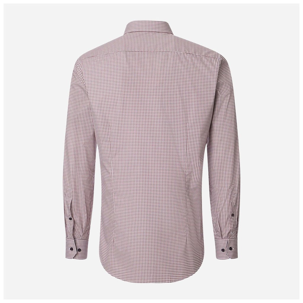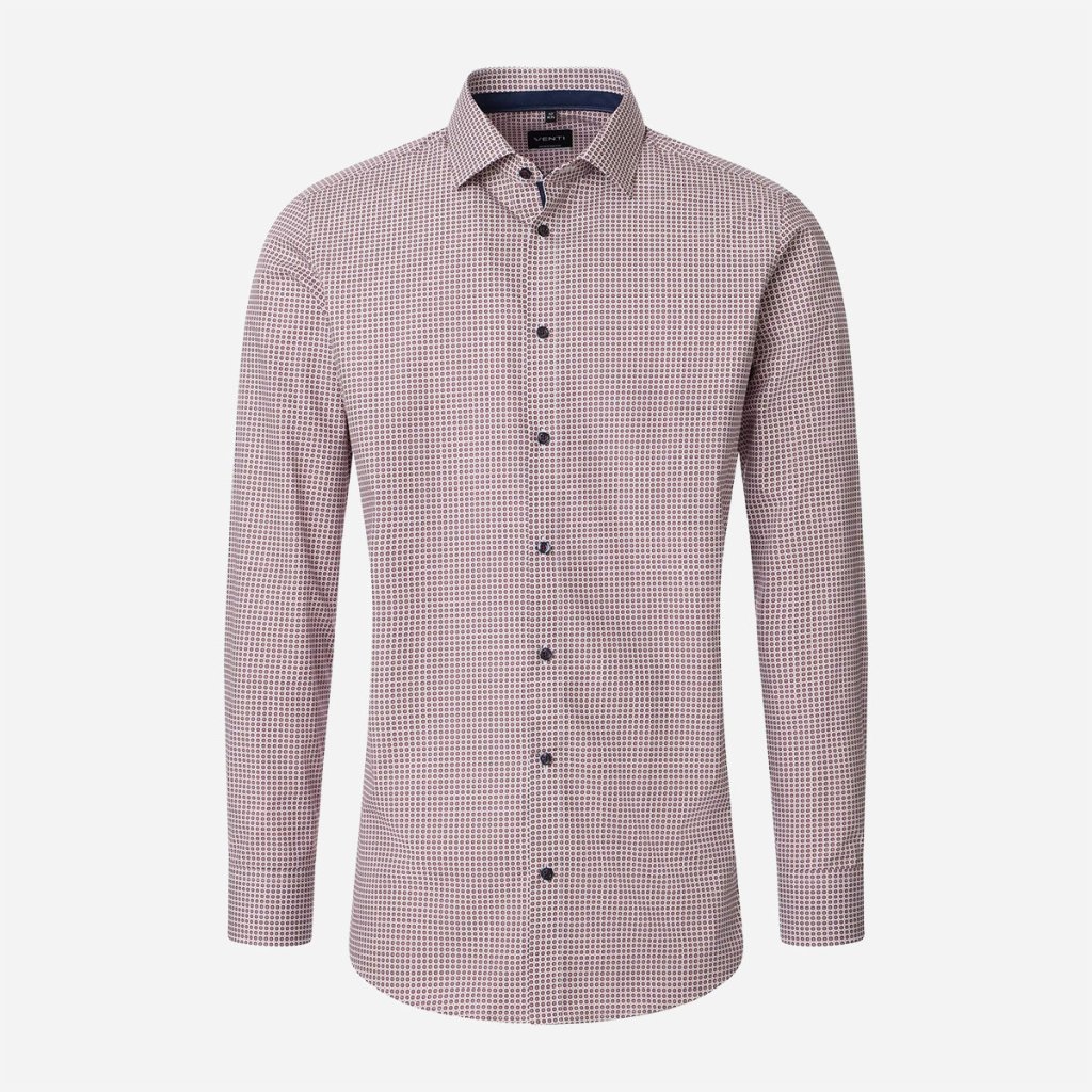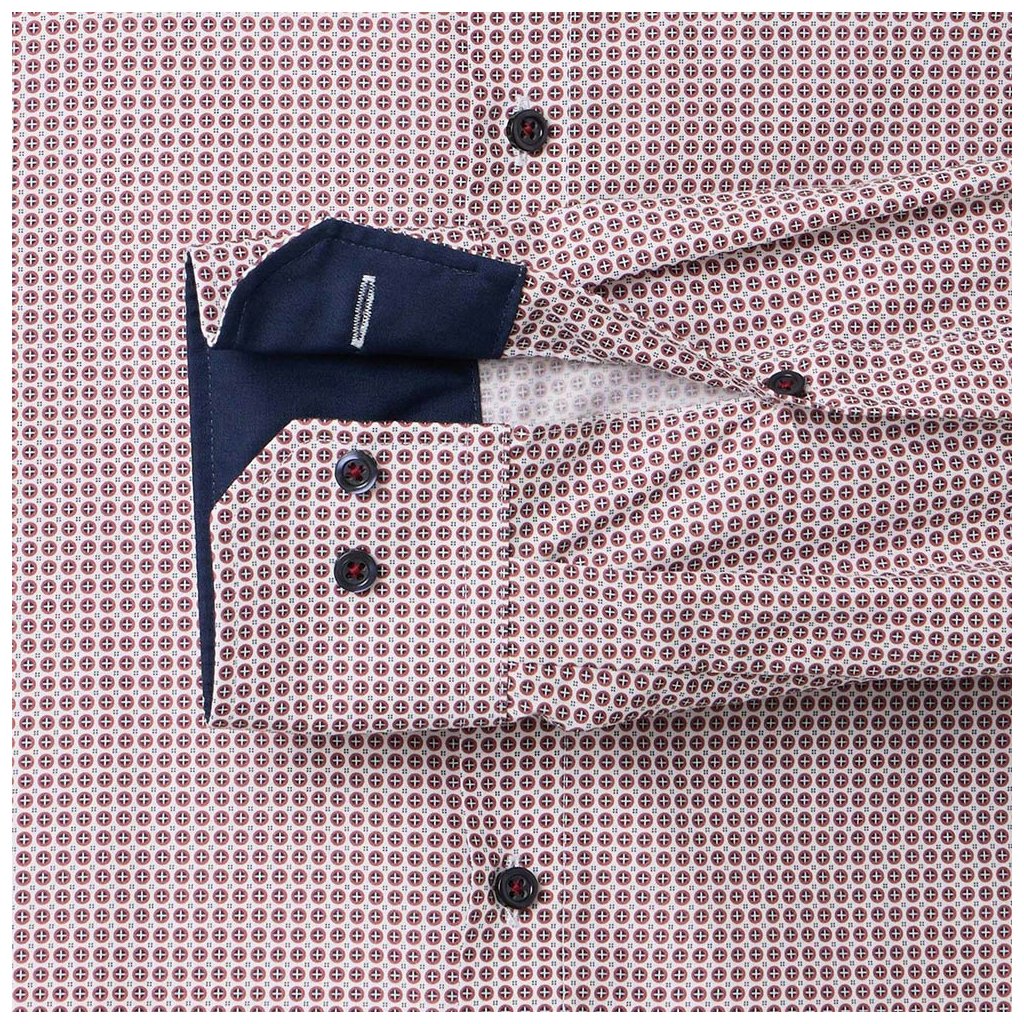 Červená vzorovaná košeľa VENTI je určená pre muža, ktorý sa nebojí farieb, ale stále si potrpí na klasické biznis štandardy. Jemný vzor dodáva košeli hĺbku a vizuálnu zaujímavosť, vďaka čomu pôsobí mimoriadne luxusne pod sakom aj samostatne s vyhrnutými rukávmi.