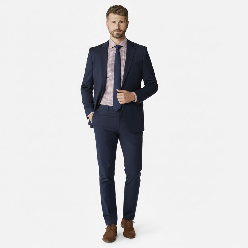 Pre sebavedomý biznis look ju skombinujte s tmavomodrým oblekom – červená a modrá tvoria klasický a silný kontrast. Ak hľadáte neformálnejšiu verziu, noste ju k tmavými džínsami alebo čiernym chinos nohaviciam.