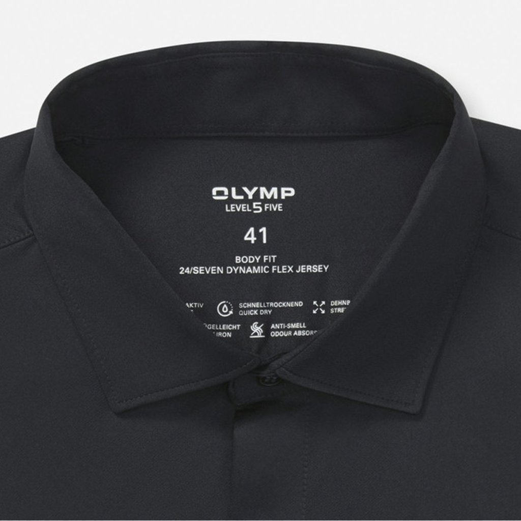Moderný život si žiada modernú košeľu. OLYMP Level Five 24/Seven Body Fit v elegantnej čiernej farbe je určená pre mužov, ktorí potrebujú výkon, štýl a pohodlie v jednom. Vďaka prémiovej zmesi polyamidu a elastanu je táto košeľa ľahká, priedušná, rýchloschnúca a zároveň jemná na dotyk.