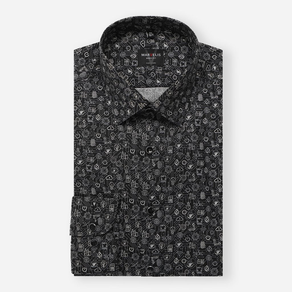 Vzorované košele bývajú často príliš výrazné alebo pôsobia menej formálne. Táto košeľa od LERROS ponúka riešenie v podobe jemného printového vzoru na čiernom podklade, ktorý dodá outfitu charakter bez toho, aby pôsobil prehnane.