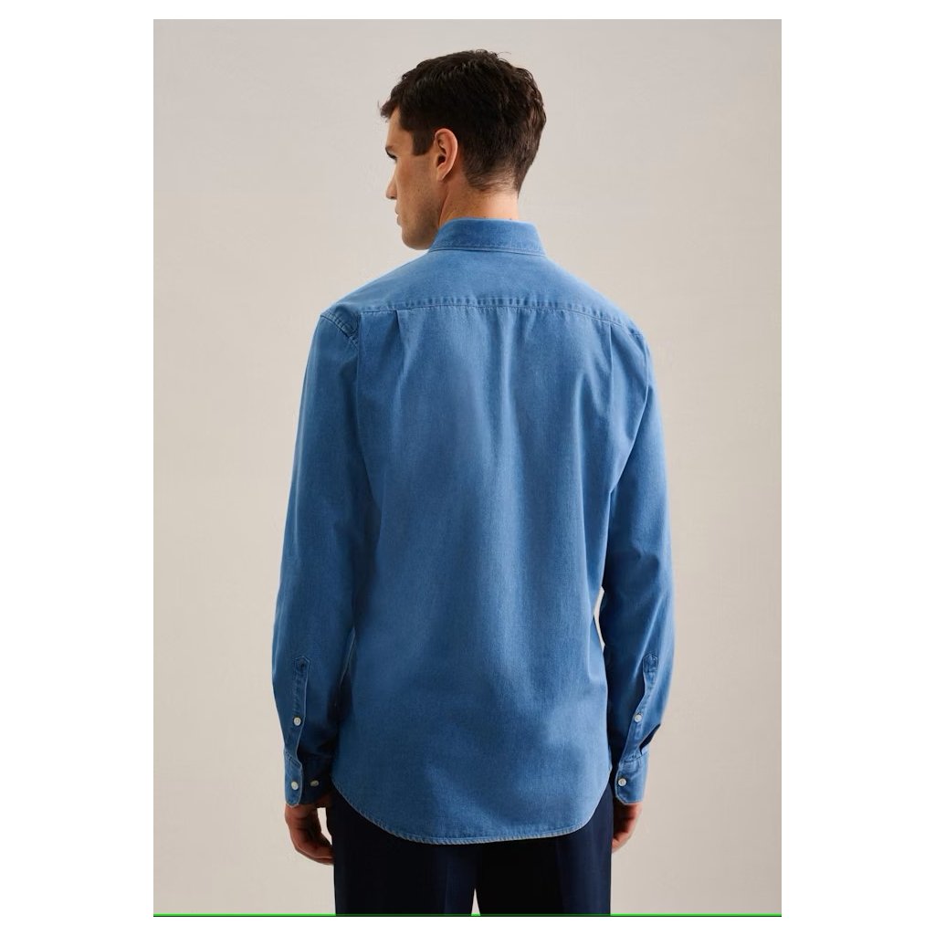 Pánska dlhorukávová košeľa v klasickom strihu od Seidenstiker. Button down golier, ikonické logo čiernej ruže vyšité na rukáve. Materiálové zloženie môže svojím spracovaním na prvý pohľad pripomínať nepoddajný denim, ide však o veľmi jemnú, priedušnú a na dotyk príjemne mäkkú tkaninu z bavlneného vlákna prémiovej kvality. Vysoko komfortný, športovo-ležérny artikel, ktorý bude perfektne vyzerať v outfite s tmavými chino nohavicami a elegantnou aj voľnočasovou obuvou.