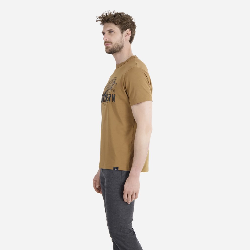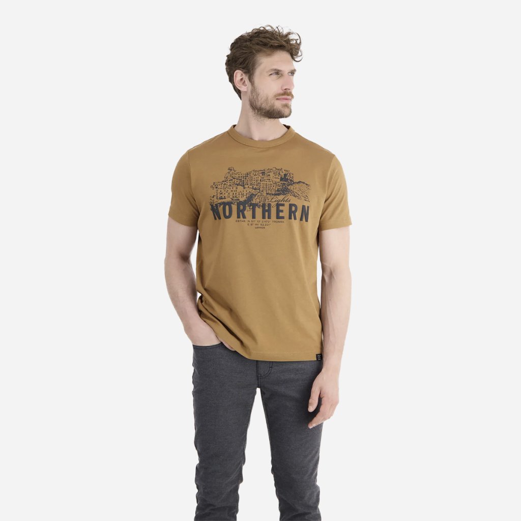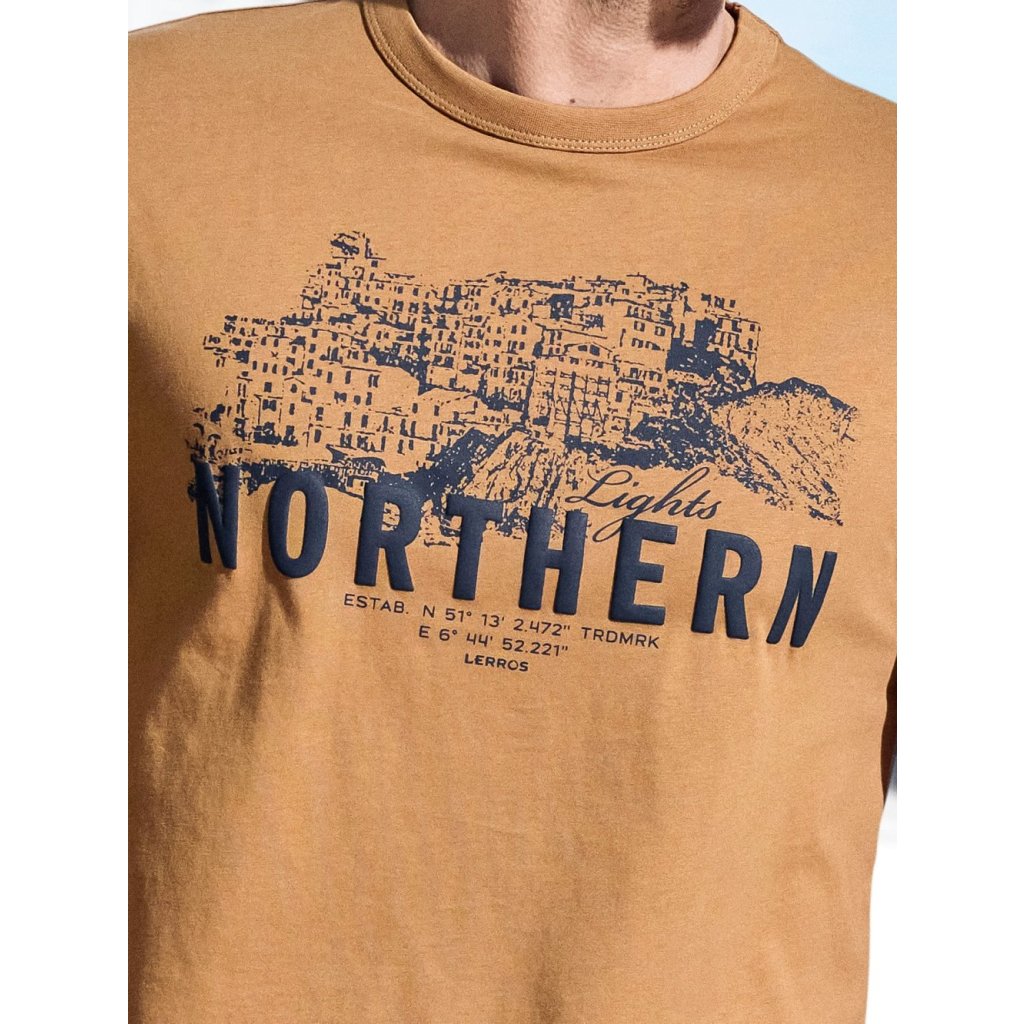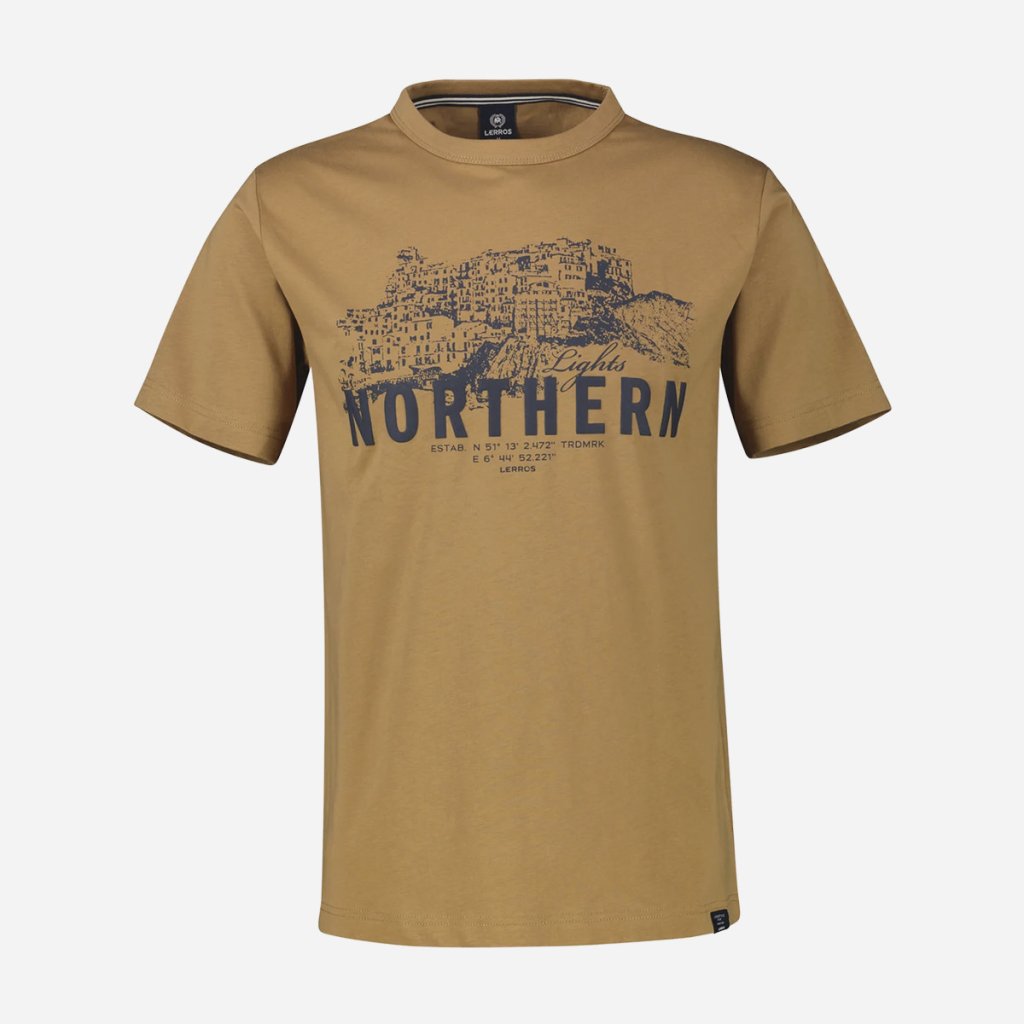 Jednofarebné pánske tričko LERROS s decentnou potlačou na hrudi v svetlohnedom odtieni. Univerzálny kúsok na každodenné nosenie.