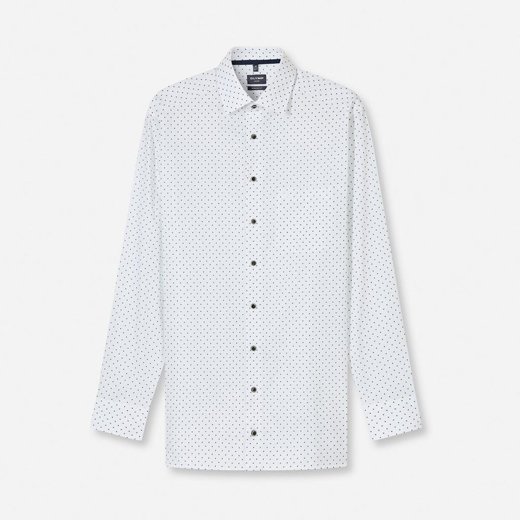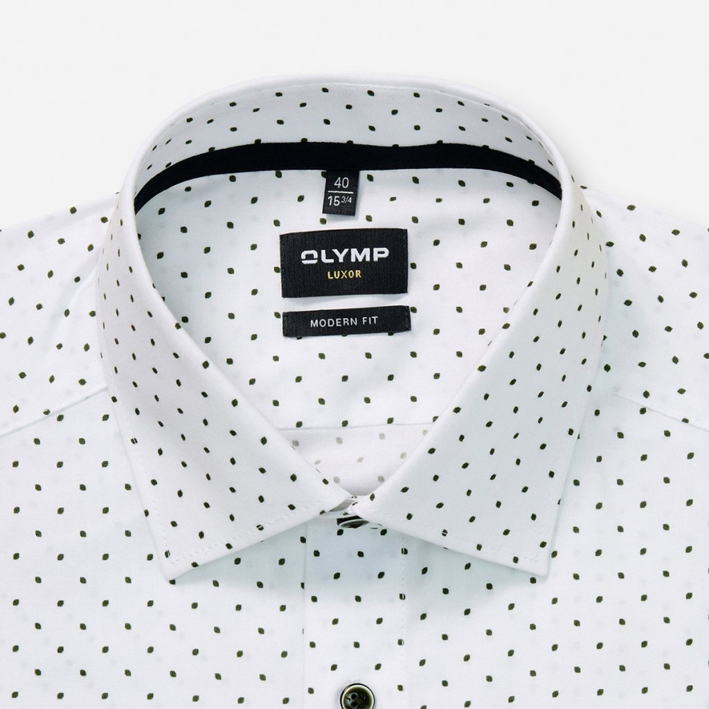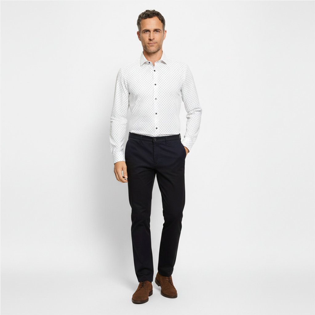 Košeľa disponuje štýlovou talianskou gombíkovou légou a moderným New Kent golierom, ktorý vyzerá skvele s kravatou aj bez nej. Decentné náprsné vrecko s výšivkou dodáva košeli tradičný nádych, zatiaľ čo strih Modern Fit sa postará o to, aby ste nepôsobili príliš upäto, ale štíhlo a profesionálne.