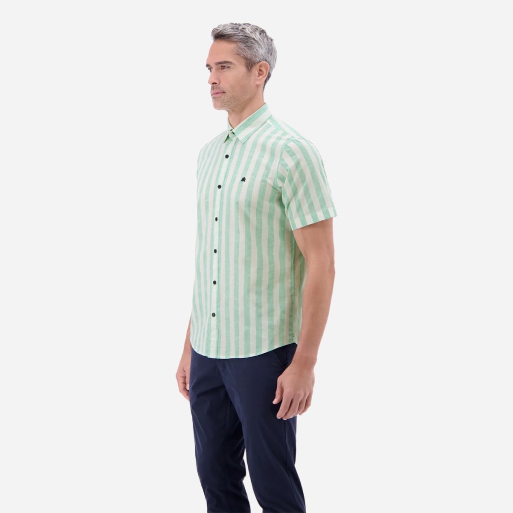 Táto pánska košeľa LERROS s krátkym rukávom a letným pruhovaným dizajnom v osviežujúcej mentolovej farbe je ideálnym spoločníkom na horúce dni. Vyrobená z jemnej zmesi bavlny, ponúka mimoriadnu vzdušnosť a komfort pri kontakte s pokožkou, zatiaľ čo klasický Kent golier a decentné vyšívané logo na hrudi dodávajú tomuto neformálnemu kúsku nadčasový a upravený vzhľad.