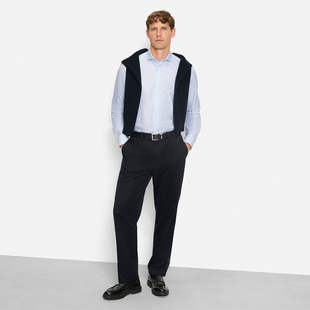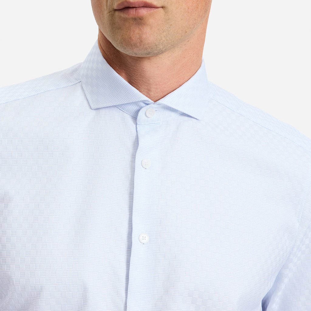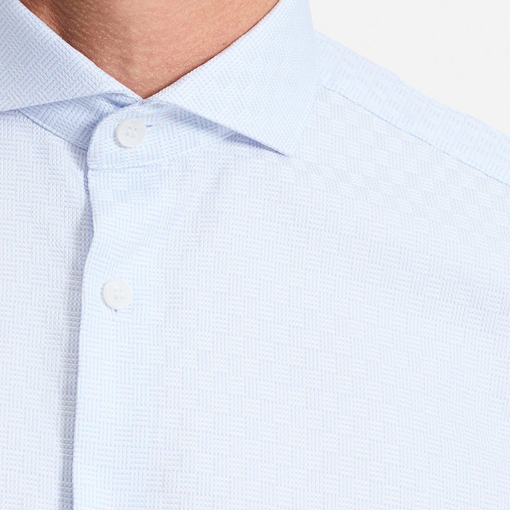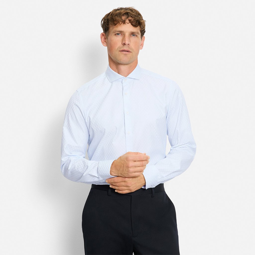 Strih Body Fit zvýrazňuje postavu bez obmedzenia pohybu, zatiaľ čo 100 % bavlna s jemnými niťami ponúka vynikajúcu priedušnosť a ľahko žehlivú úpravu. Golier typu Cutaway dodáva outfitu sebavedomý charakter a elegantnú siluetu – či už s kravatou, alebo bez nej.