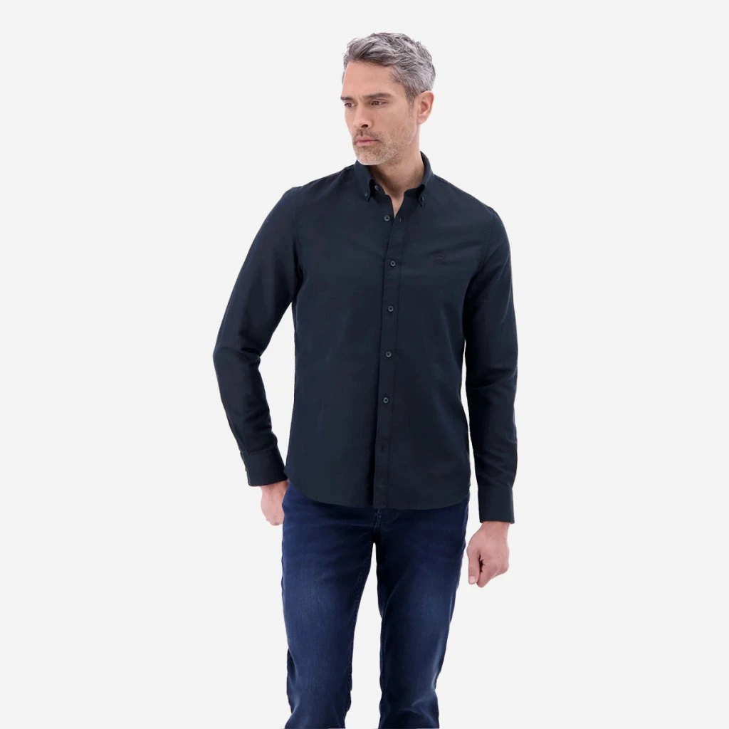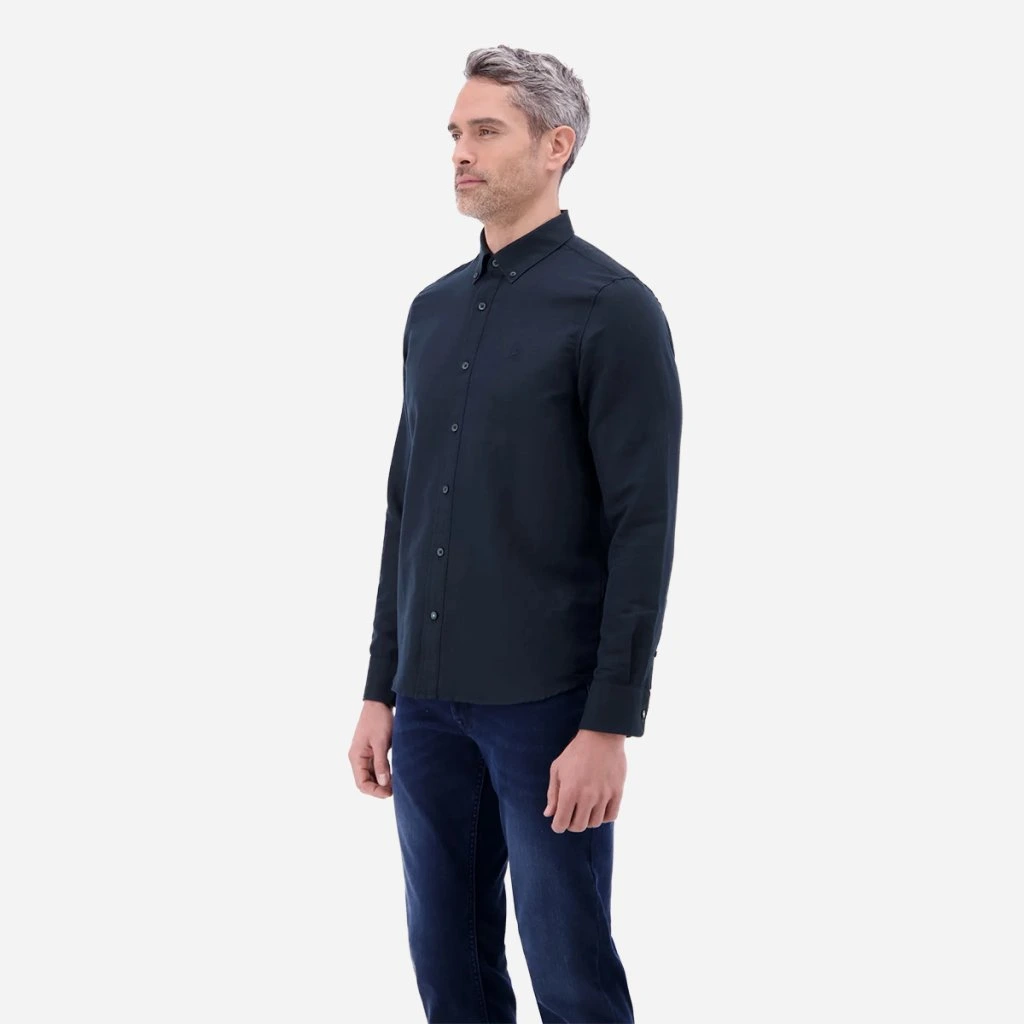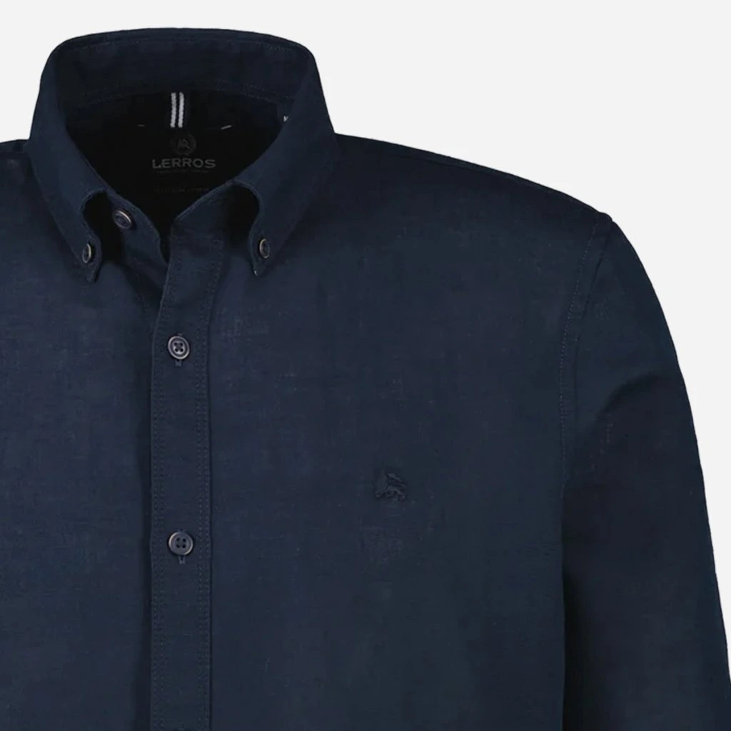 Košeľa disponuje button-down golierom, ktorý pevne drží na svojom mieste a dodáva košeli úhľadný vzhľad aj bez kravaty. Na hrudi nájdete decentné vyšívané logo značky, ktoré podčiarkuje jej kvalitu.