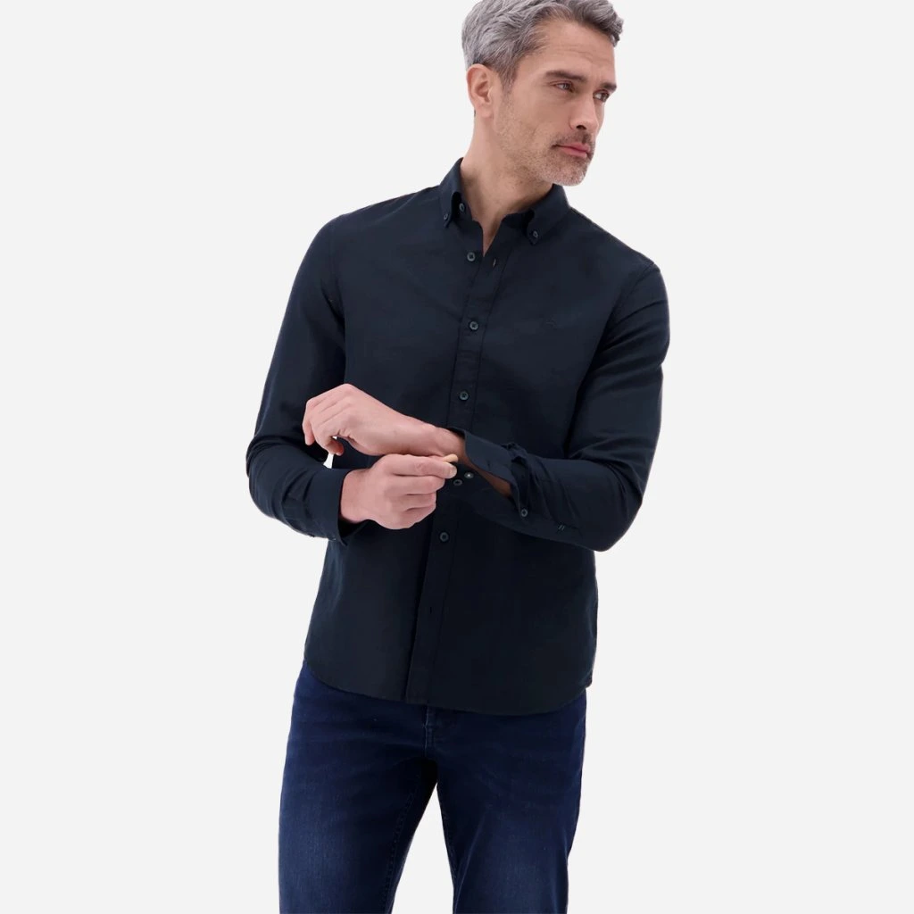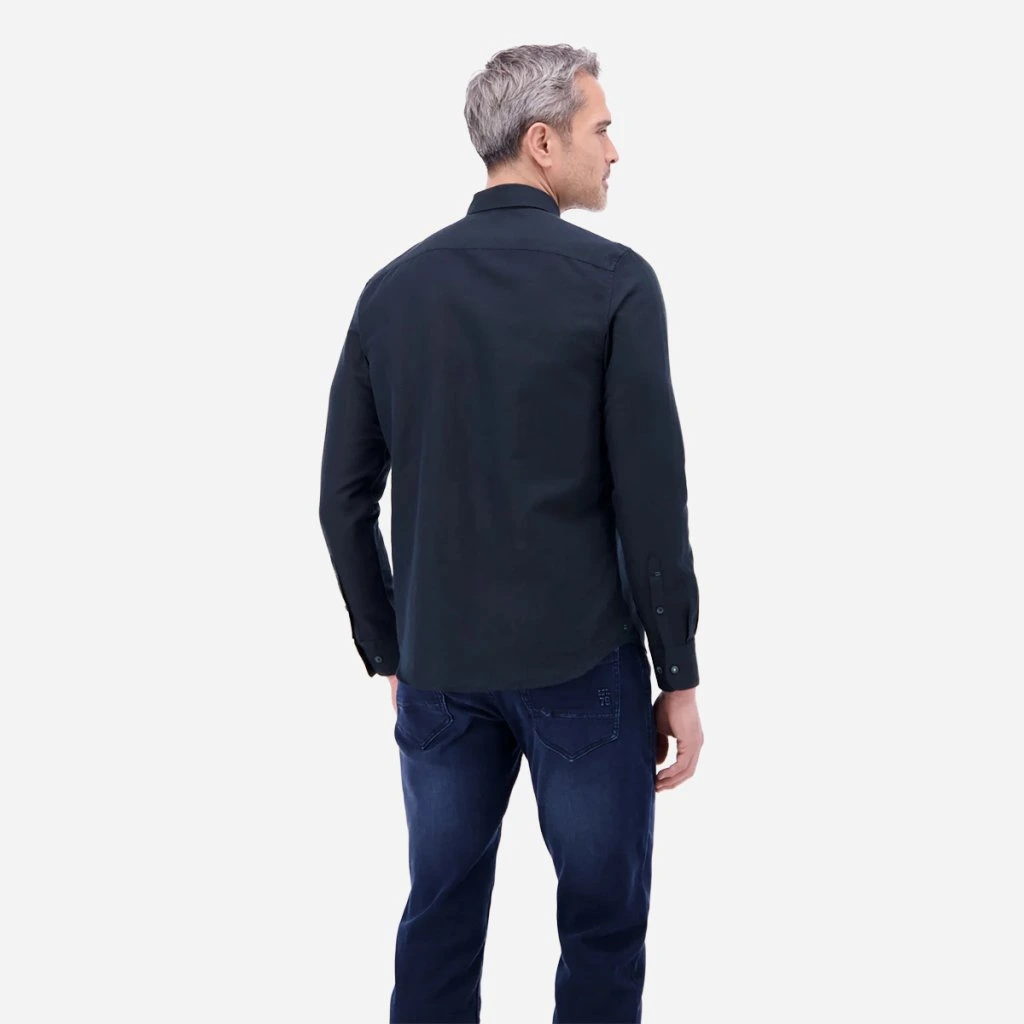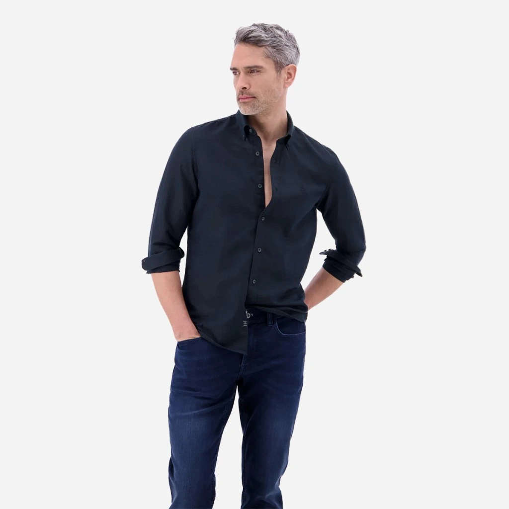 Dve gombíkové manžety umožňujú pohodlné nastavenie šírky rukáva, prípadne ich štýlové vyhrnutie pre uvoľnenejší letný look. Strih je navrhnutý tak, aby rešpektoval mužskú postavu a poskytoval dostatok voľnosti pri každom pohybe.