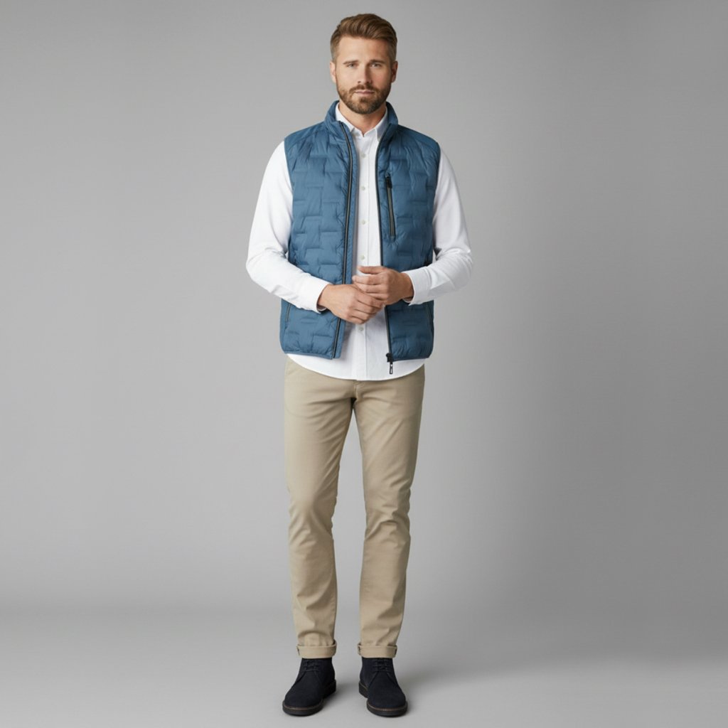 Vďaka kvalitnej výplni a pevnému materiálu vesta drží svoj tvar a zachováva si pôvodné vlastnosti aj pri častom nosení. Je ľahká, priedušná a neobmedzuje v pohybe, čo z nej robí ideálneho partnera pre muža v pohybe.