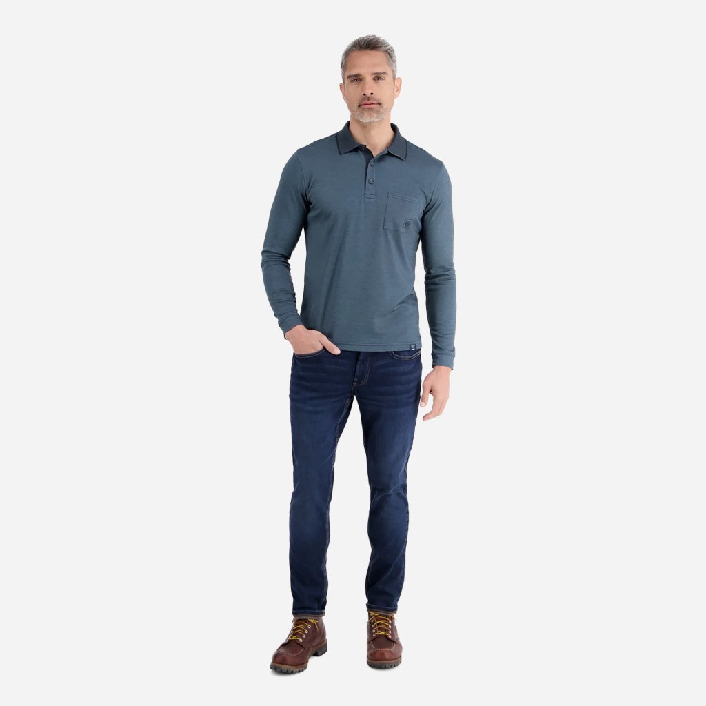 Materiálová zmes kvalitnej bavlny a syntetických vlákien poskytuje mäkký a štruktúrovaný pocit, ktorý je príjemný na pokožke a zároveň praktický na údržbu. Náprsné vrecko dopĺňa dizajn a zvyšuje praktickosť.