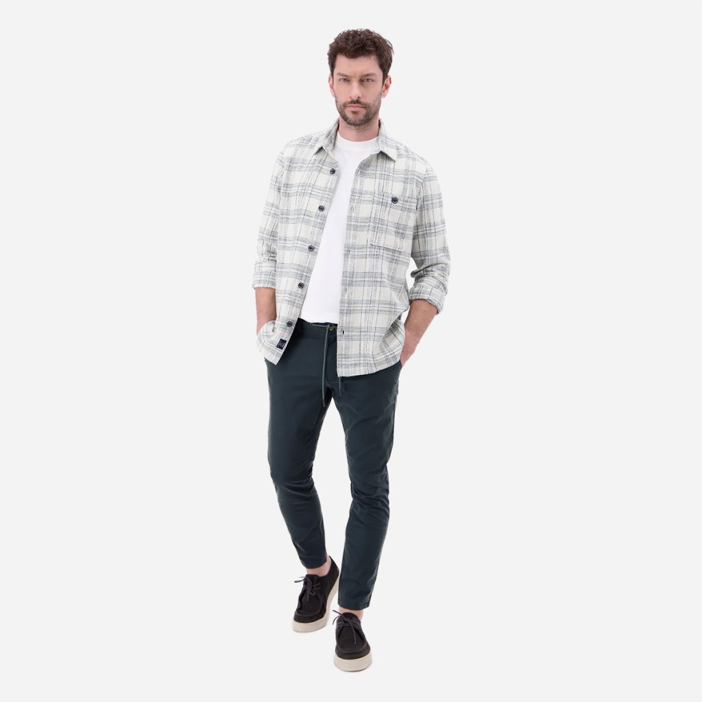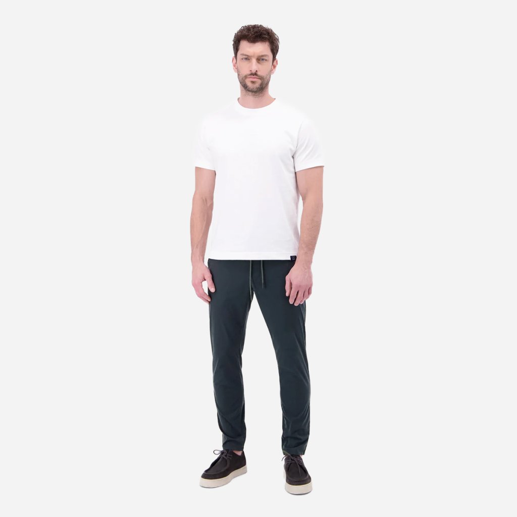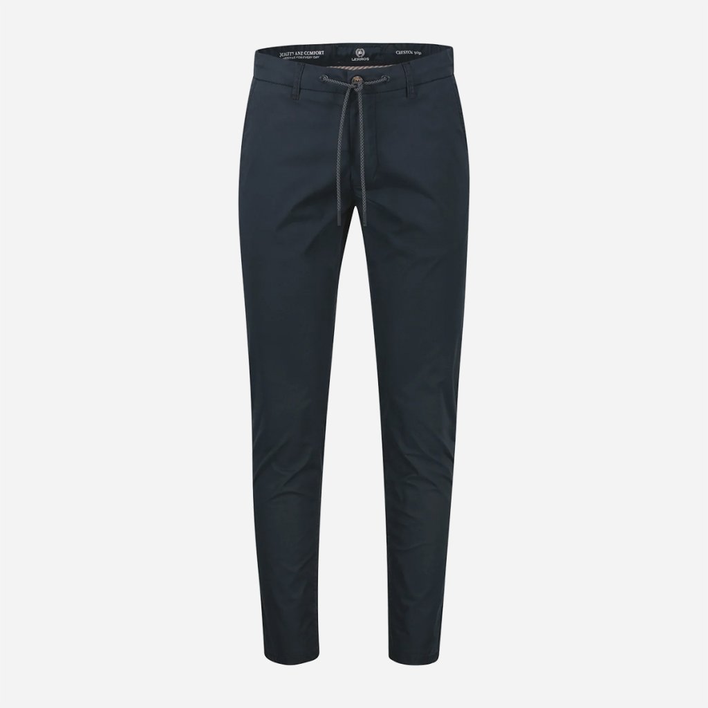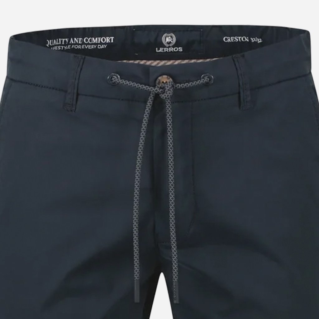 Praktické vrecká a decentné kovové logo značky LERROS dopĺňajú vzhľad bez toho, aby pôsobili rušivo. Výsledkom sú nohavice, ktoré riešia komfort aj vzhľad v jednom kuse.
