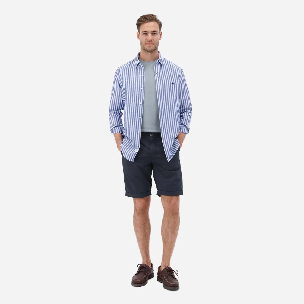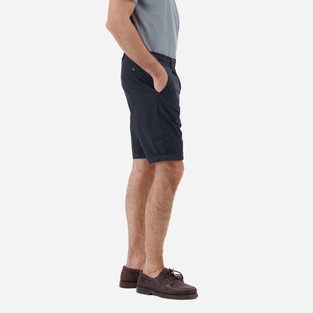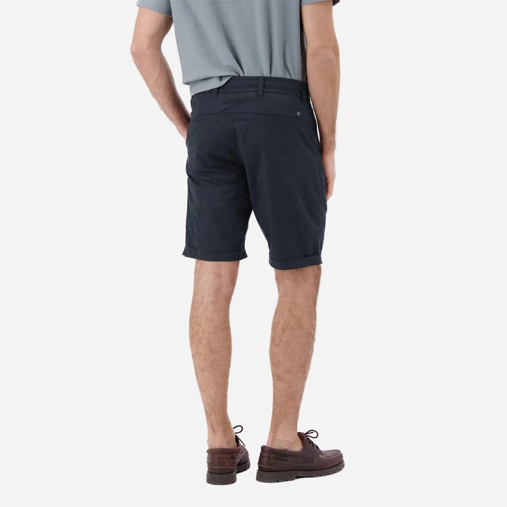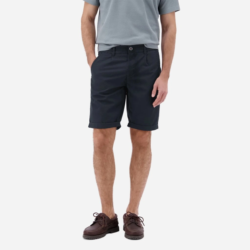 Bermudy disponujú dvoma hlbokými bočnými vreckami a dvoma zadnými vreckami na gombík, ktoré bezpečne pojmú peňaženku aj smartfón. Kvalitný materiál je stály, drží svoj tvar a tmavomodrá farba Navy ostáva sýta aj po mnohých praniach, čo je pri každodennom letnom nosení kľúčové.
