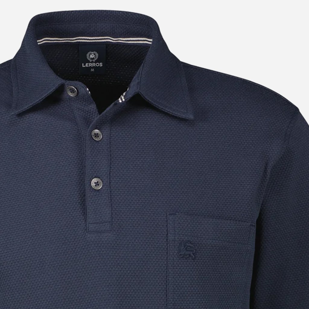 Elegantné pánske polo LERROS s dlhým rukávom z mäkkej bavlny s waffle štruktúrou ponúka pohodlie, štýl a nadčasový vzhľad. Vhodné do práce aj na voľný čas.