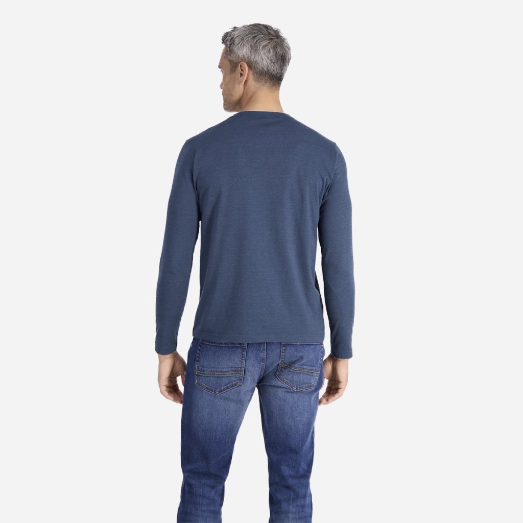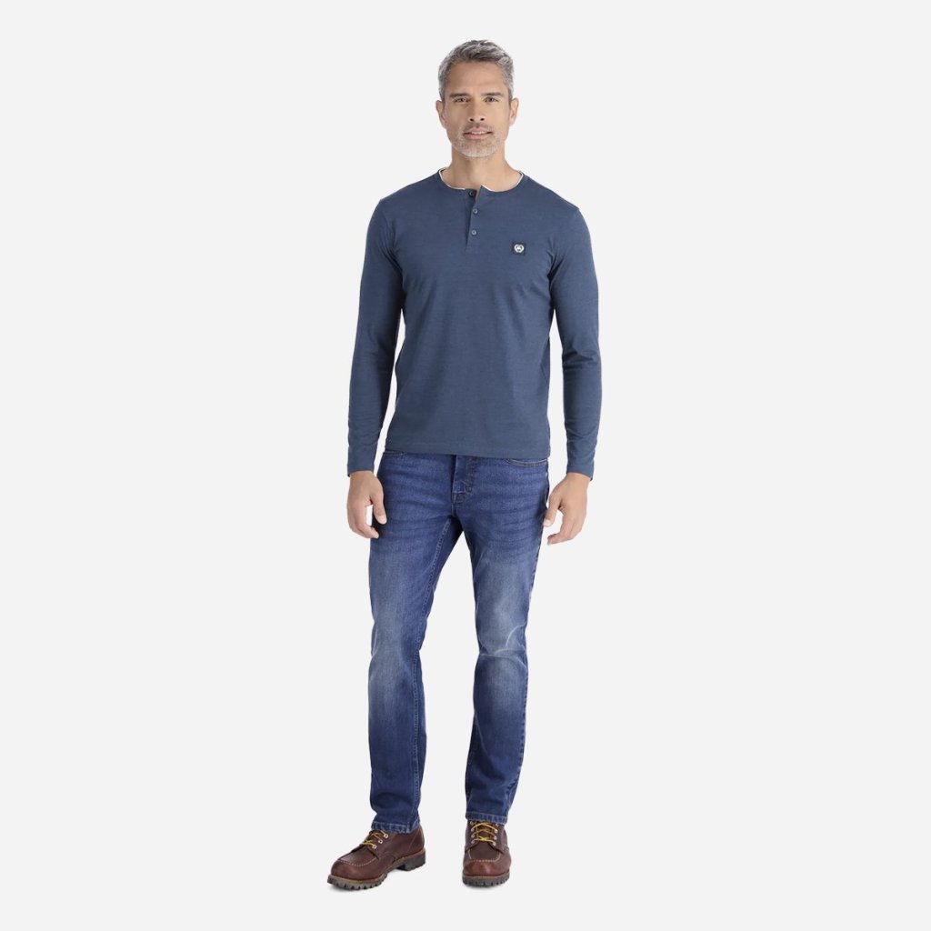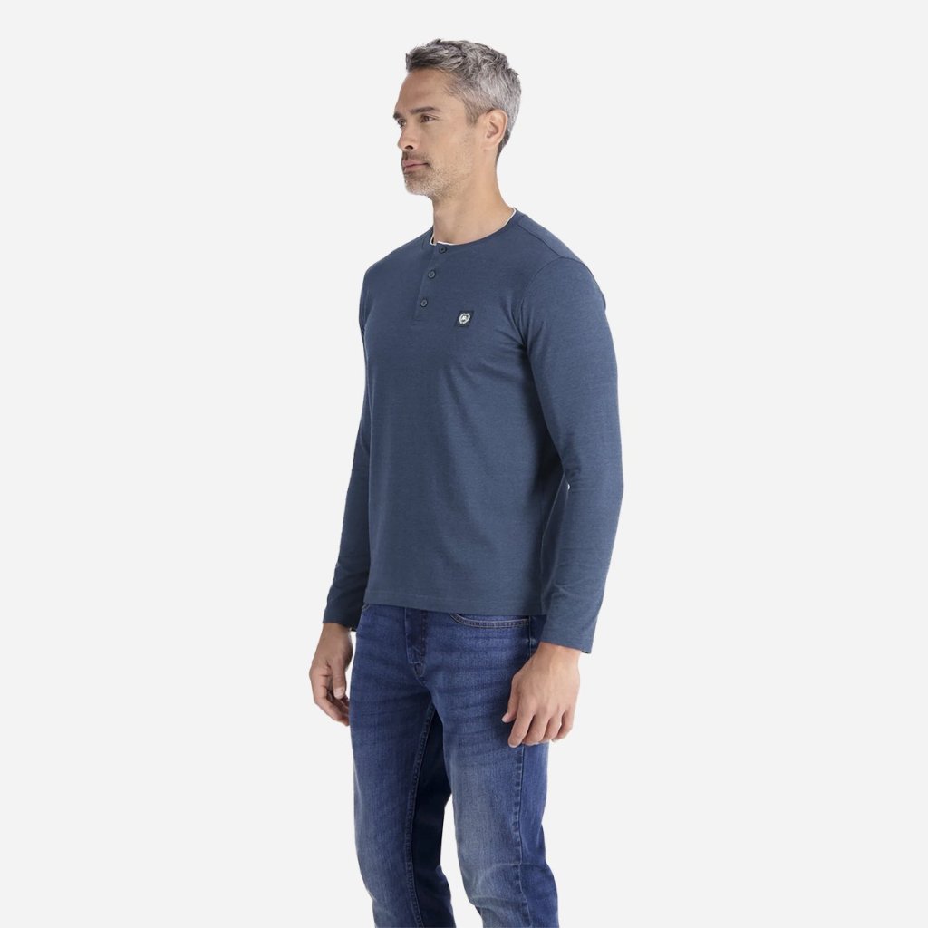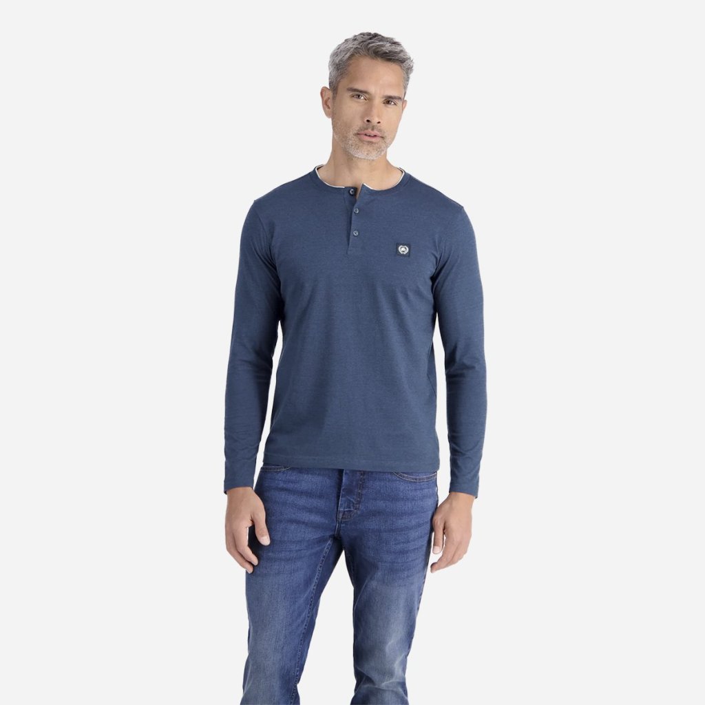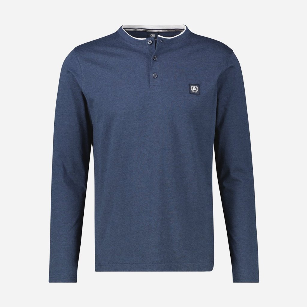 Modré pánske tričko s dlhým rukávom – Henley štýl LERROS
