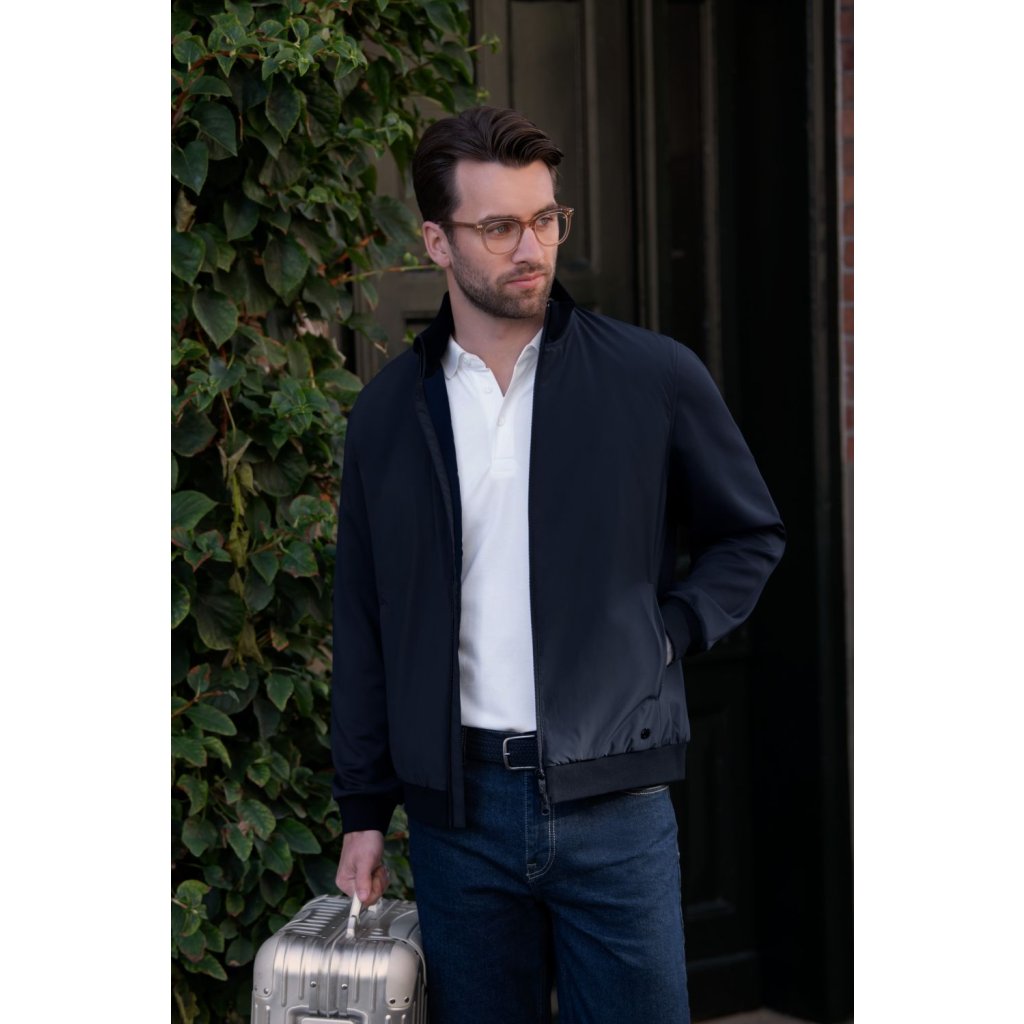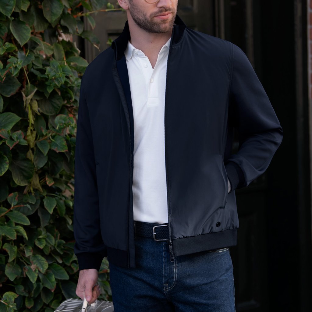 Dvojcestný zips zvyšuje praktickosť pri sedení alebo vrstvení. Navy farba pôsobí univerzálne a ľahko sa kombinuje s rifľami, chinos nohavicami aj pod kabát.
