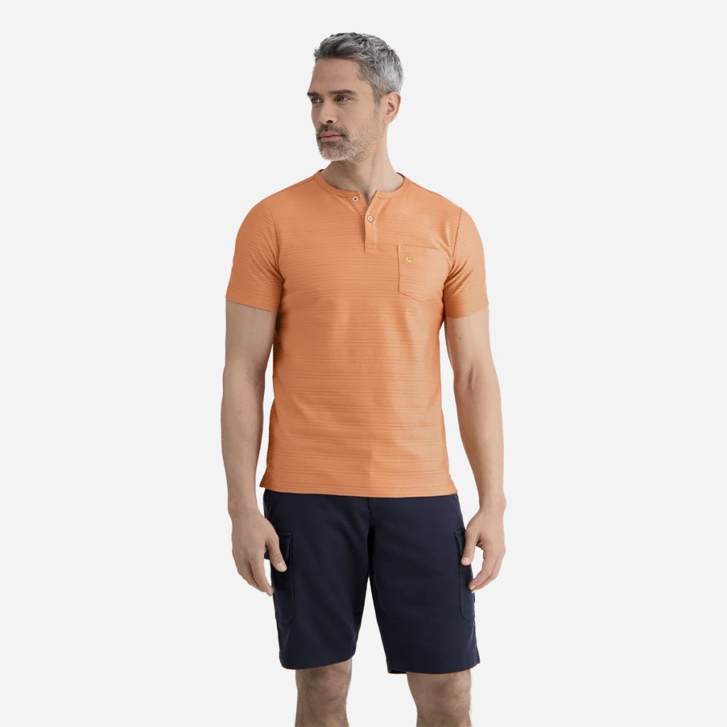 Tričko má krátky rukáv, rovný strih a je ideálnym kúskom pre mužov, ktorí sa chcú cítiť uvoľnene a zároveň štýlovo – či už na víkendový brunch, dovolenku alebo mestskú prechádzku.