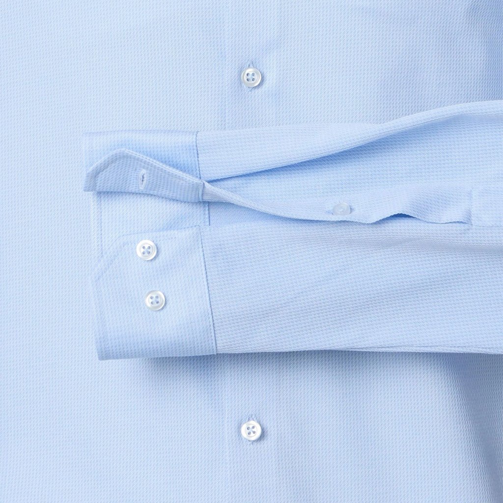 Klasický Kent golier podporuje nadčasový vzhľad a absencia náprsného vrecka zvyšuje eleganciu. Košeľa sa ľahko kombinuje so sakom, vestou aj oblekovými nohavicami.