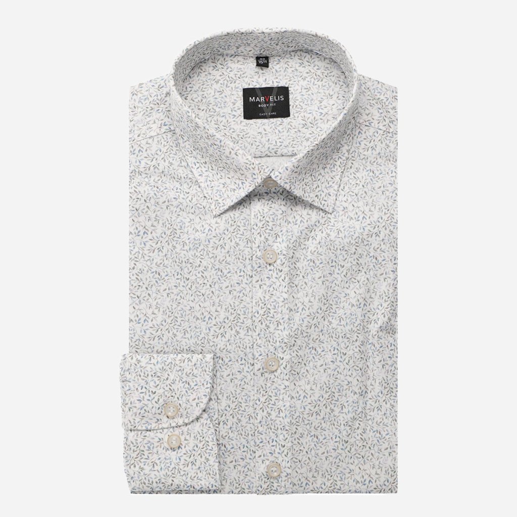 Bežné košele bývajú príliš voľné alebo sa po krátkom nosení pokrčia. Táto košeľa od Marvelis rieši oba problémy strihom Body Fit a úpravou easy care.