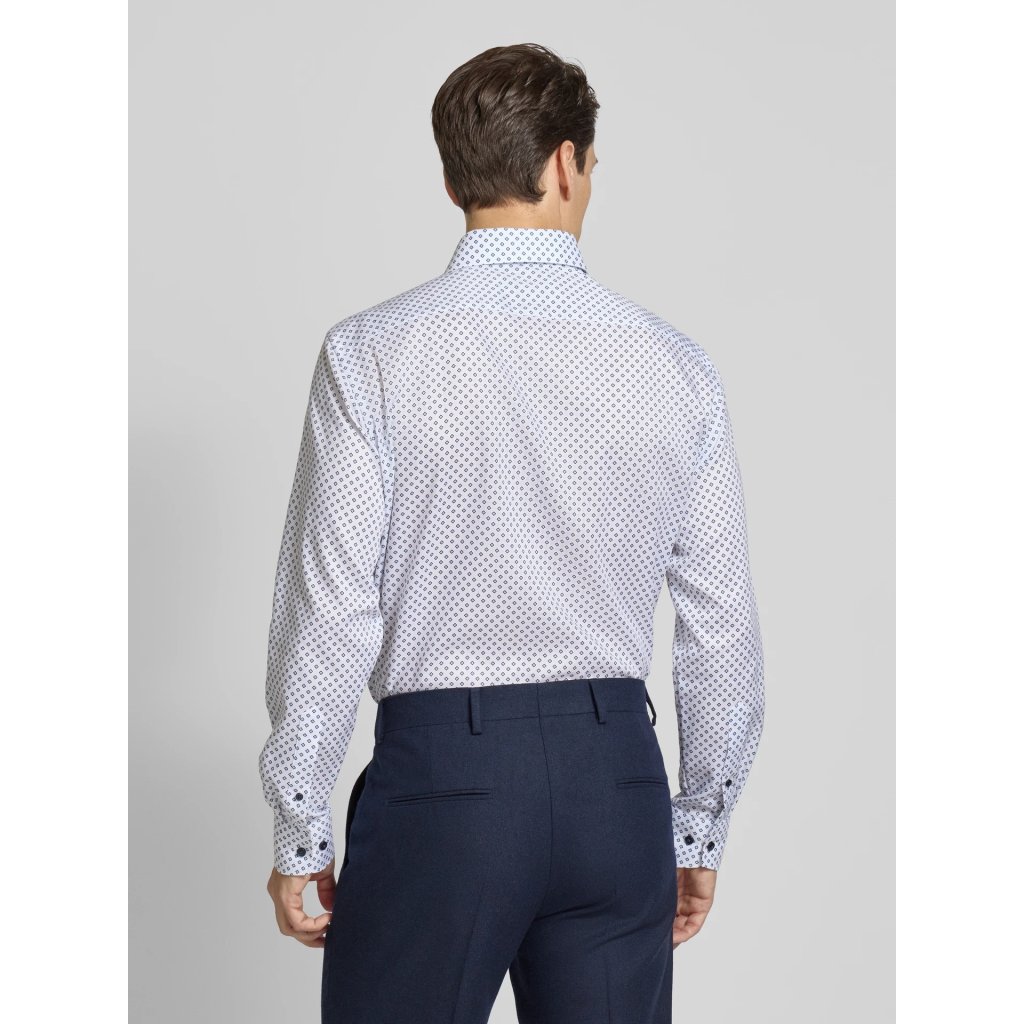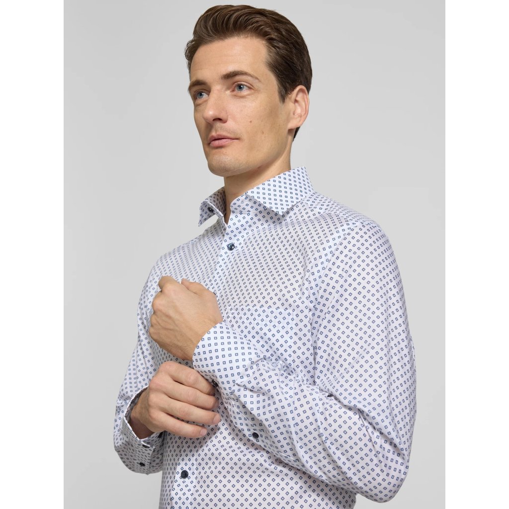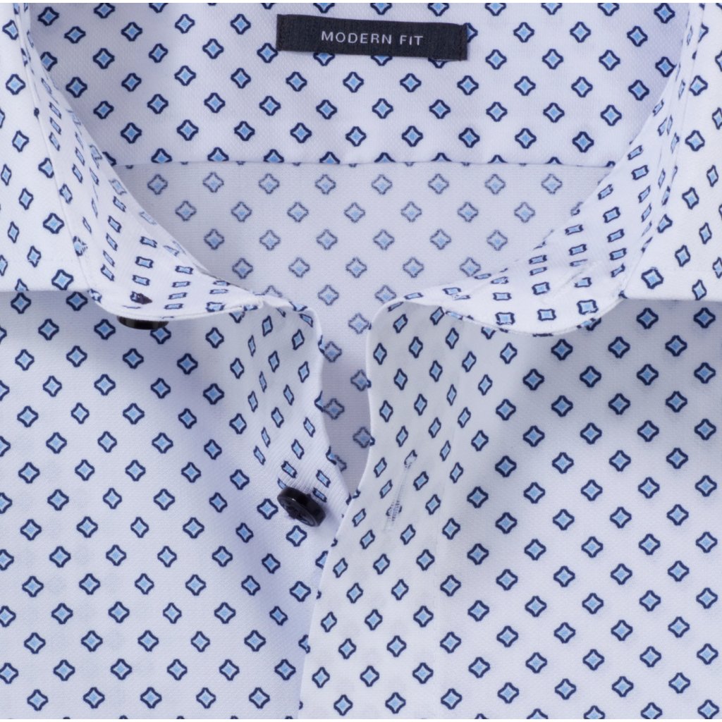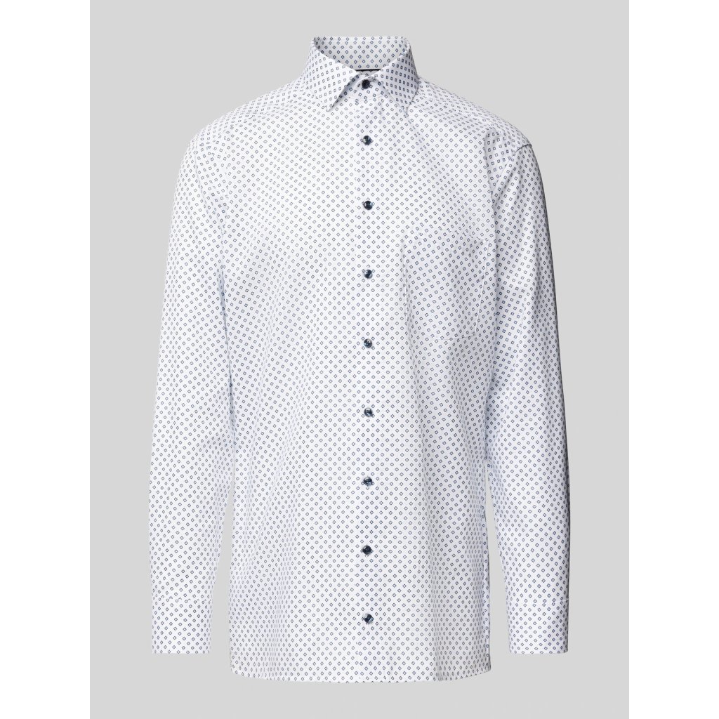 Elegantná pánska košeľa OLYMP Luxor v strihu Modern fit zo 100 % bavlneného popelínu s celoplošným svetlomodrým vzorom. Edícia OLYMP Luxor je určená pre najnáročnejších zákazníkov, ktorí ocenia kvalitnú bavlnenú látku, precízne vypracovanie a elegantný štýl. Vysokopriedušný materiál a nežehlivá úprava zaručujú maximálny komfort a uľahčia vám každodennú starostlivosť.