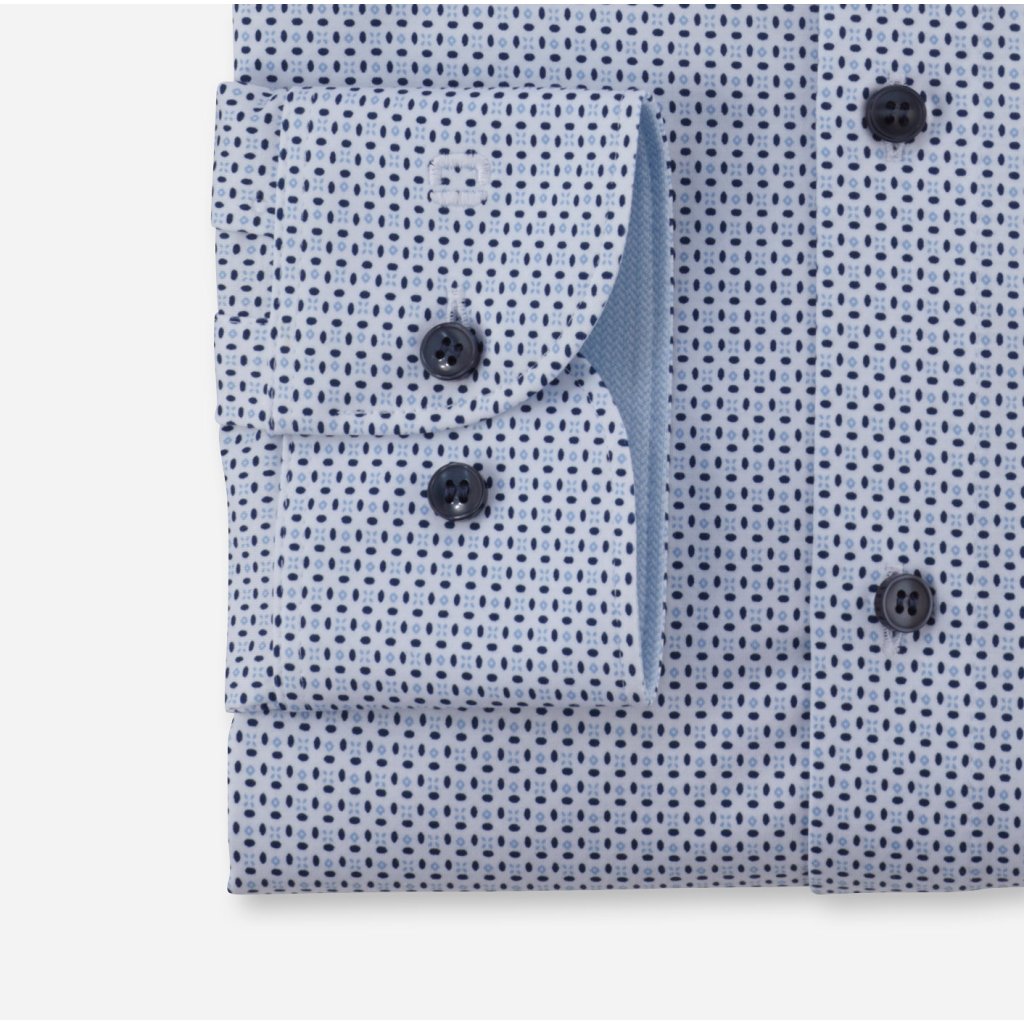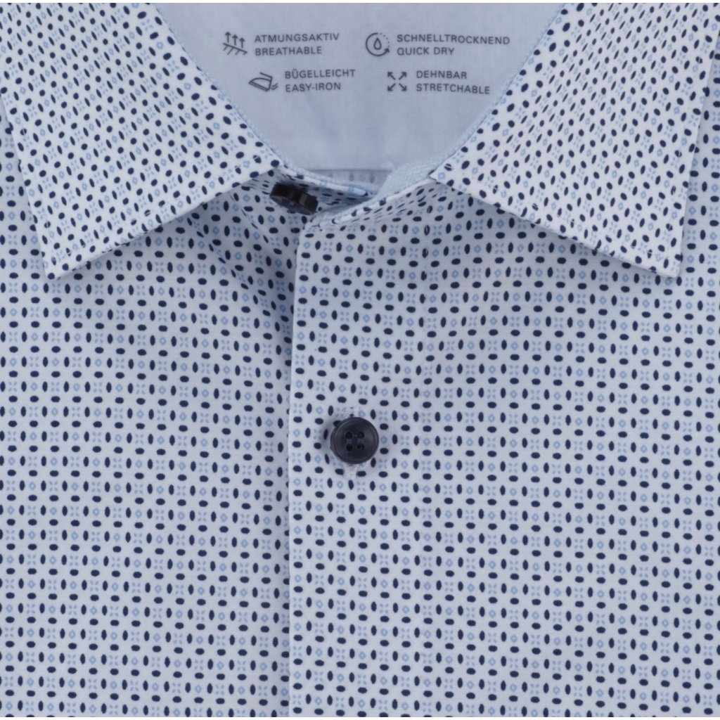 Táto elegantná pánska košeľa OLYMP z edície 24/Seven je skvelá voľba pre každého, kto chce vyzerať elegantne a cítiť sa pohodlne. Má biely podklad a zdobia ju kontrastné gombíky a jemný vzor, vďaka čomu pôsobí štýlovo, ale nie príliš výrazne. Hodí sa na rôzne príležitosti – do práce, na oslavy alebo na bežné nosenie.