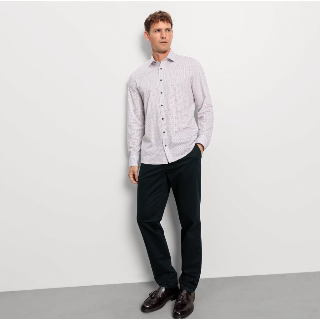 Moderná pánska košeľa so vzorom vhodná do kancelárie aj na voľný čas. OLYMP Level Five je vrcholom športovej edície - obľúbená tkanina 24/SEVEN Dynamic Flex Jersey ponúka vlastnosti dynamického funkčného oblečenia vrátane priedušnosti , regulácie vlhkosti, pružnosti a jednoduchého žehlenia. Dodáva sa v klasickom biznisovom vzhľade vrátane strihu na telo (Body fit - Level 5), goliera New York Kent a štýlovou rotačnou sieťotlačou v červeno-modrom odtieni.
