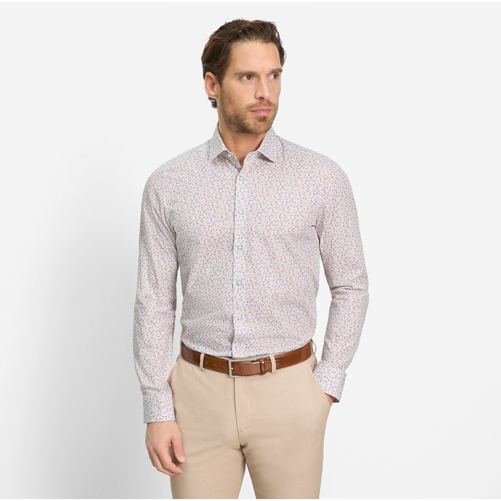 Látka je zo 100 % bavlny – ľahká, priedušná a mierne elastická, aby sa košeľa pohodlne nosila. Golier Modern Kent je decentný, elegantný a vhodný aj ku kravate. Jasná koralová farba oživí šatník a zároveň ostáva dostatočne reprezentatívna pre pracovné prostredie.