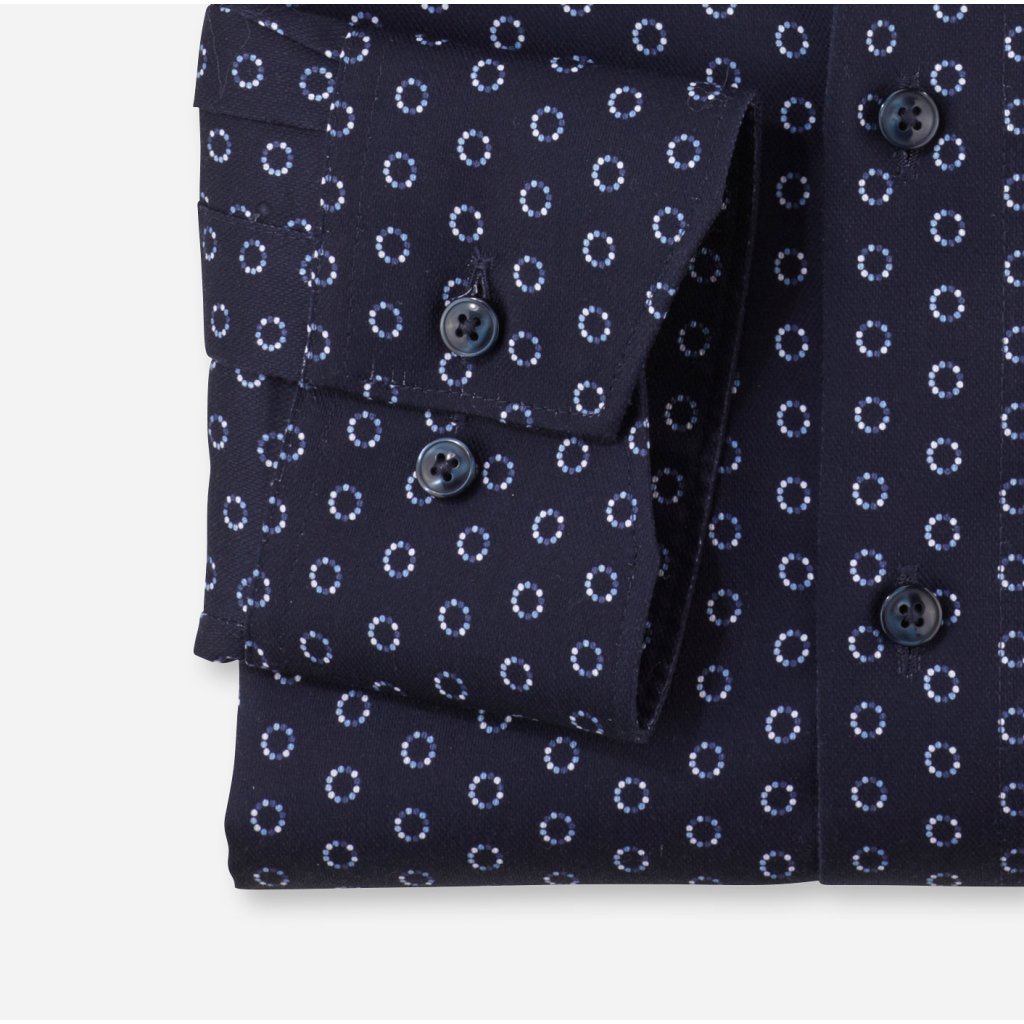 Táto elegantná tmavomodrá košeľa OLYMP Luxor Modern fit je základným kúskom v šatníku každého muža. Čistý dizajn, moderný strih a nekrčivý materiál zaručia, že budete vyzerať skvele bez zbytočnej námahy.