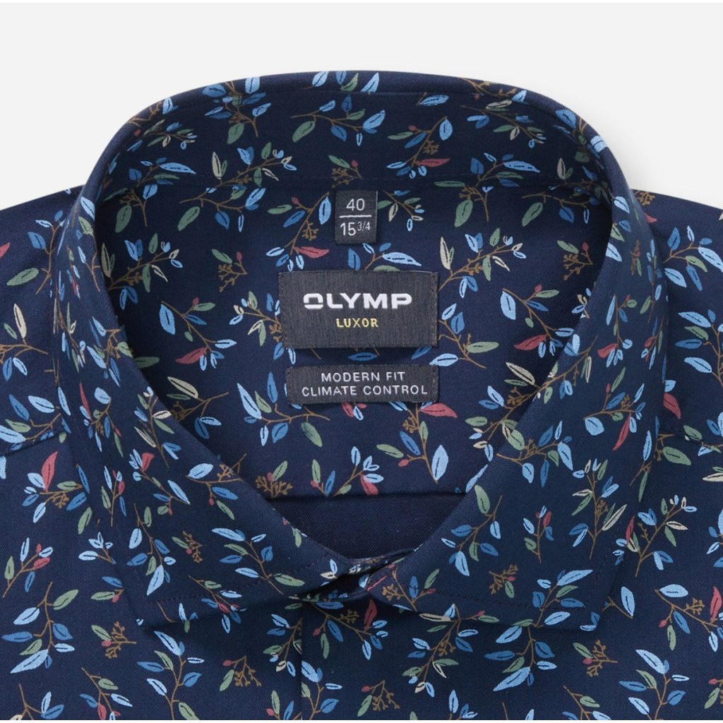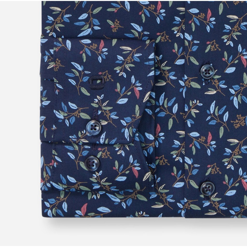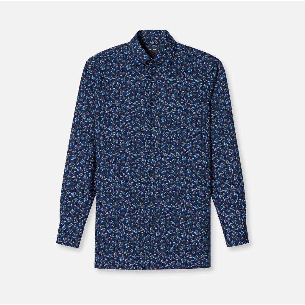 Táto pánska košeľa OLYMP Luxor 24/Seven Modern Fit z kolekcie „Business meets Activewear“ spája elegantný dizajn s technickou funkčnosťou. Jemný kvetinový vzor na námorníckom základe dodáva košeli výraz, ktorý je štýlový, no nie prehnaný – ideálny pre moderného profesionála.