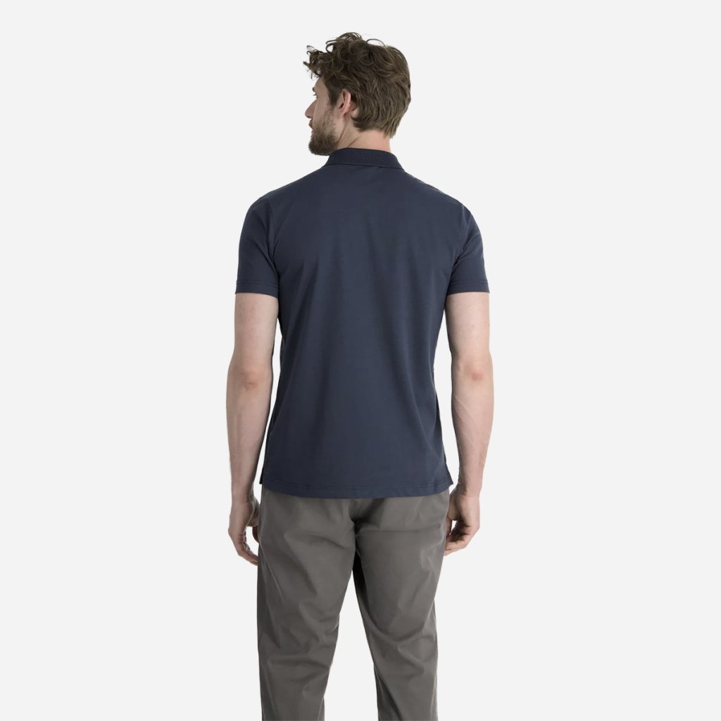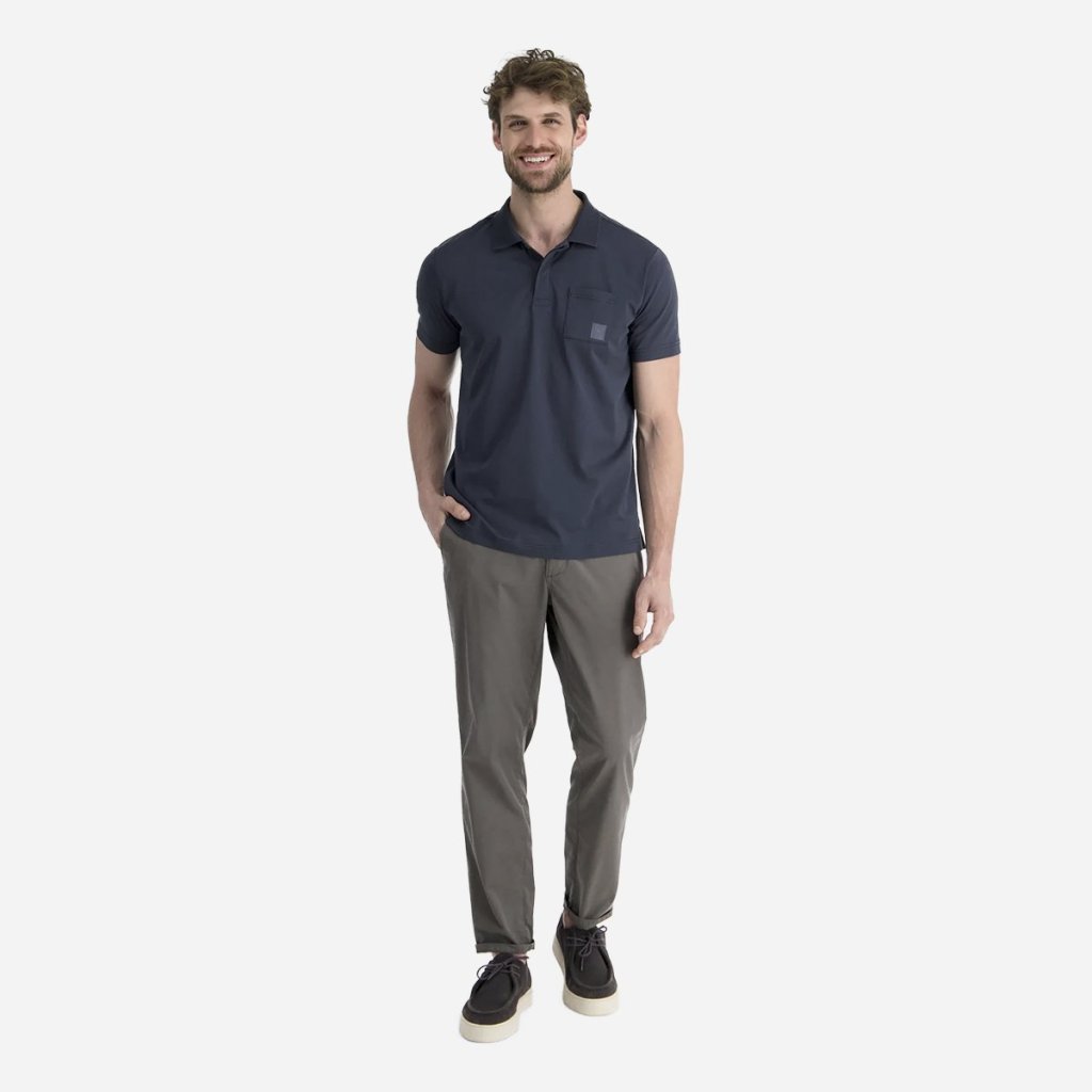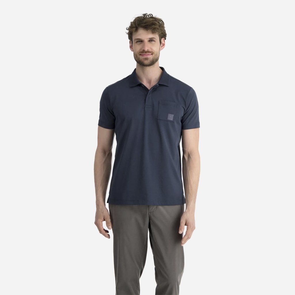 Moderný a čistý vzhľad dopĺňa polo golier s légou na gombíky, pričom mierne priliehavý strih (Modern Fit) sadne väčšine postáv. Jemný materiál s mikroštruktúrou zaručuje príjemný pocit na pokožke a elegantný vzhľad bez kompromisov na funkčnosti.