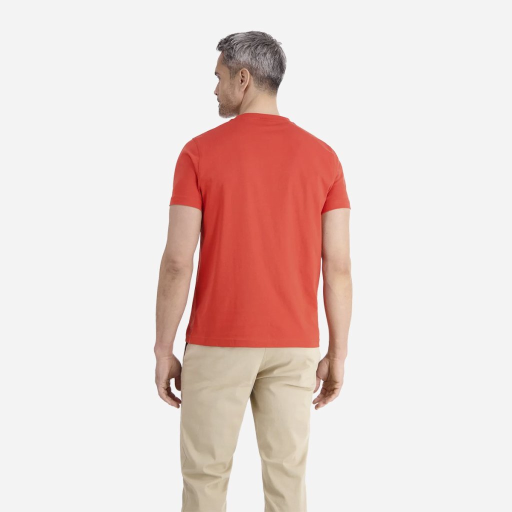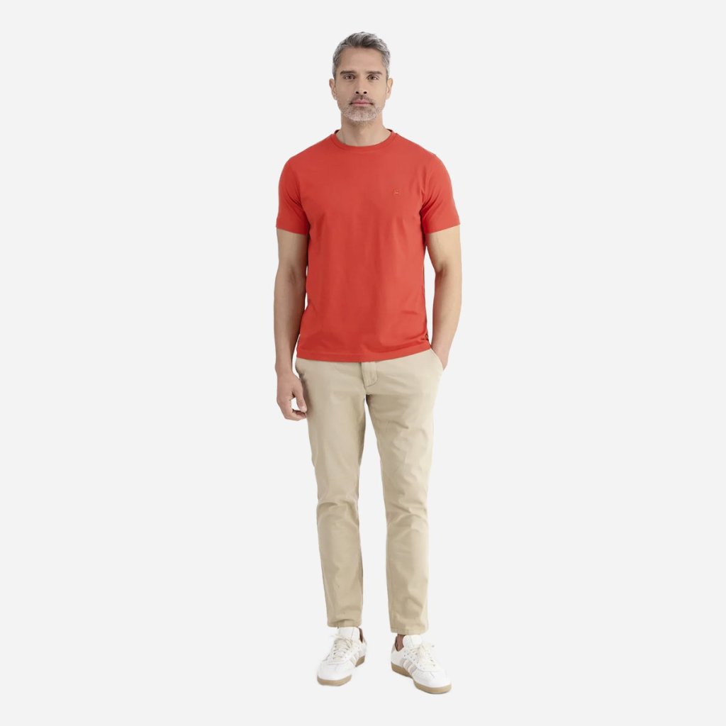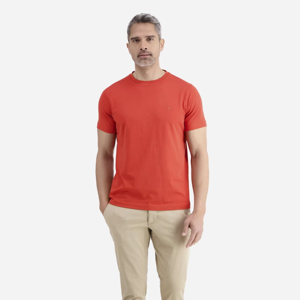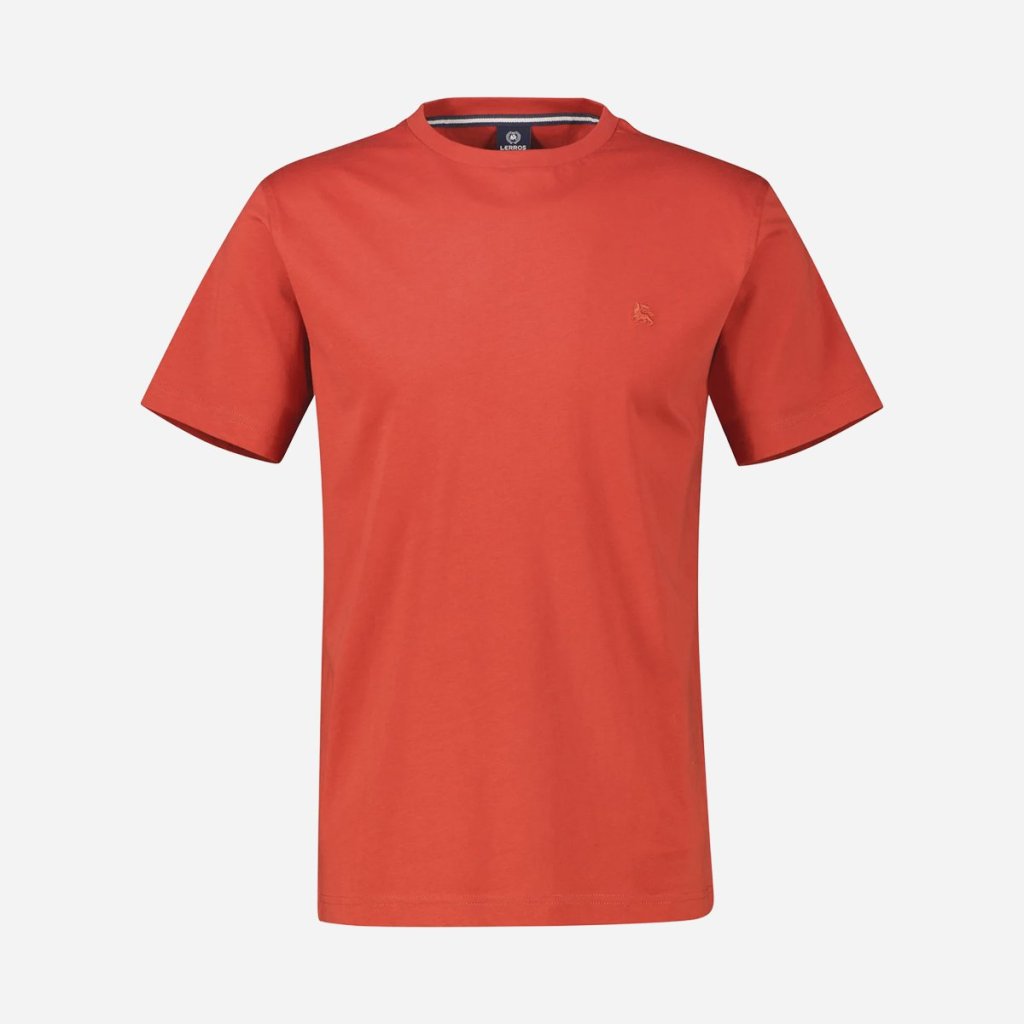 Tehlovo-červené pánske tričko LERROS v minimalistickom štýle, doplnené decentným vyšitým logom na hrudi v tónovanom odtieni látky.