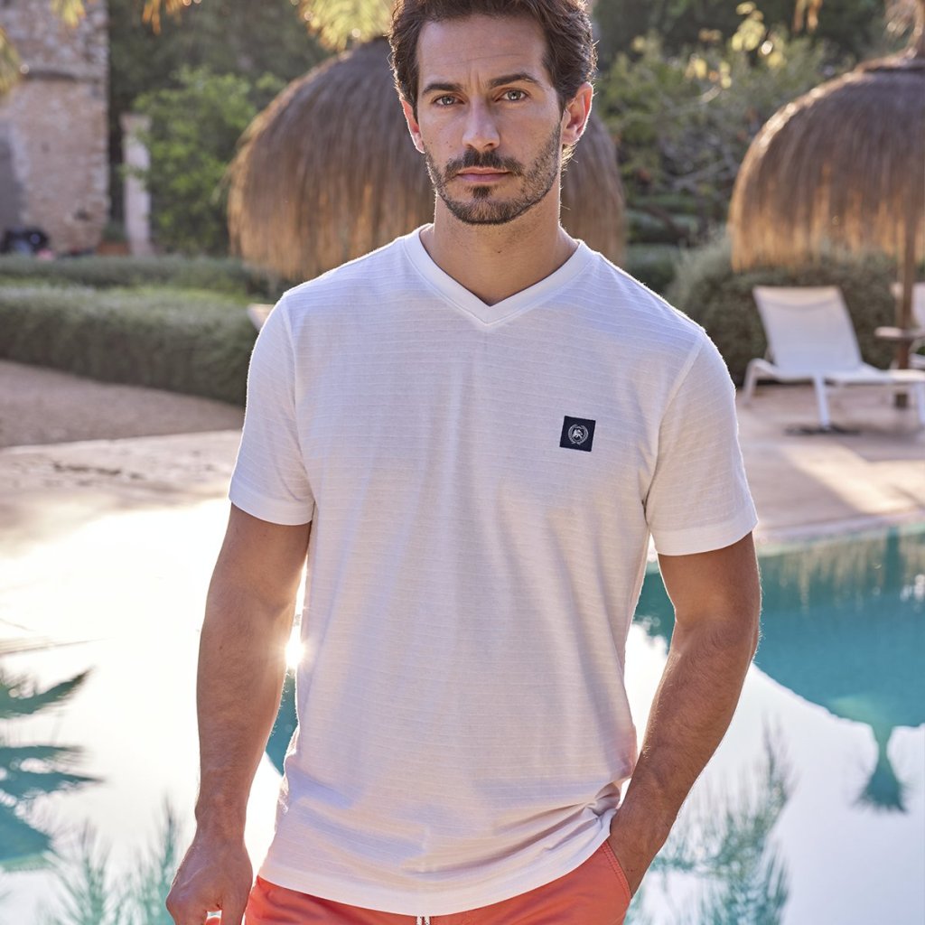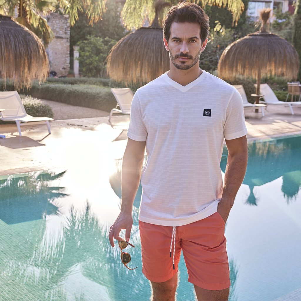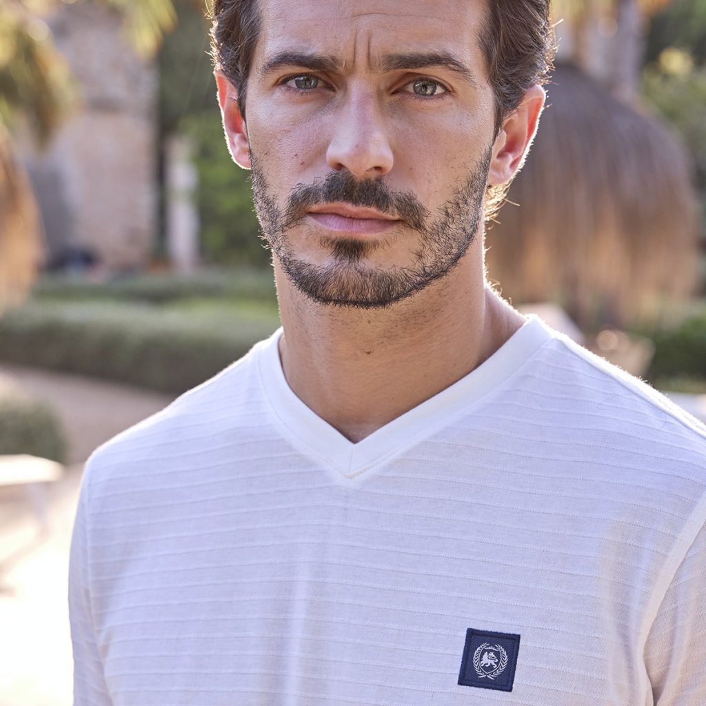 Klasické, no zároveň moderné – pánske tričko s výstrihom do „V“ od značky LERROS v odtieni broken white je univerzálnym základom šatníka každého muža. Je vyrobené zo 100 % bavlny, ktorá je príjemná na dotyk, priedušná a vhodná na celodenné nosenie. Výstrih do „V“ dodáva tričku elegantný nádych, vďaka čomu sa výborne kombinuje s džínsami, chinos nohavicami či šortkami. Logo LERROS je decentne umiestnené na hrudi, aby nenarušilo čistý dizajn. Ak hľadáte pohodlný a nadčasový kúsok bez zbytočností, práve ste ho našli.