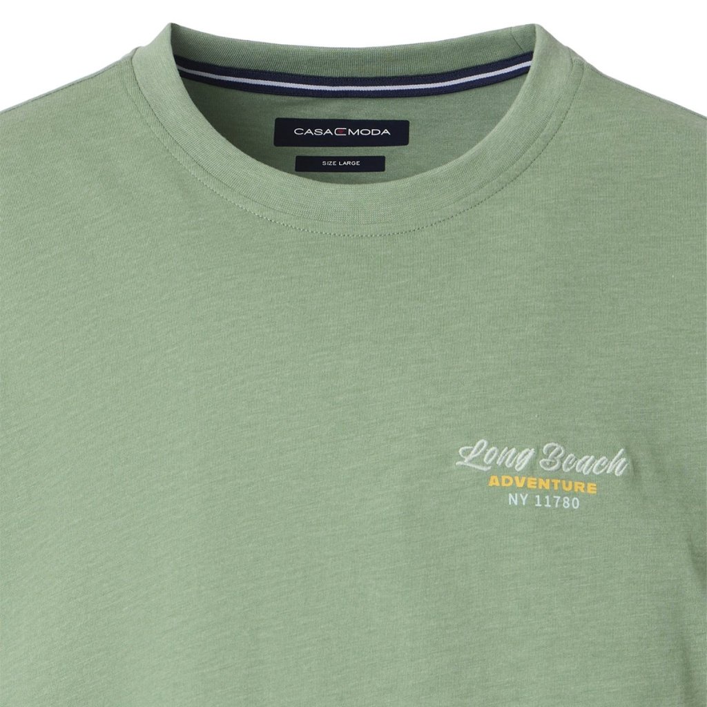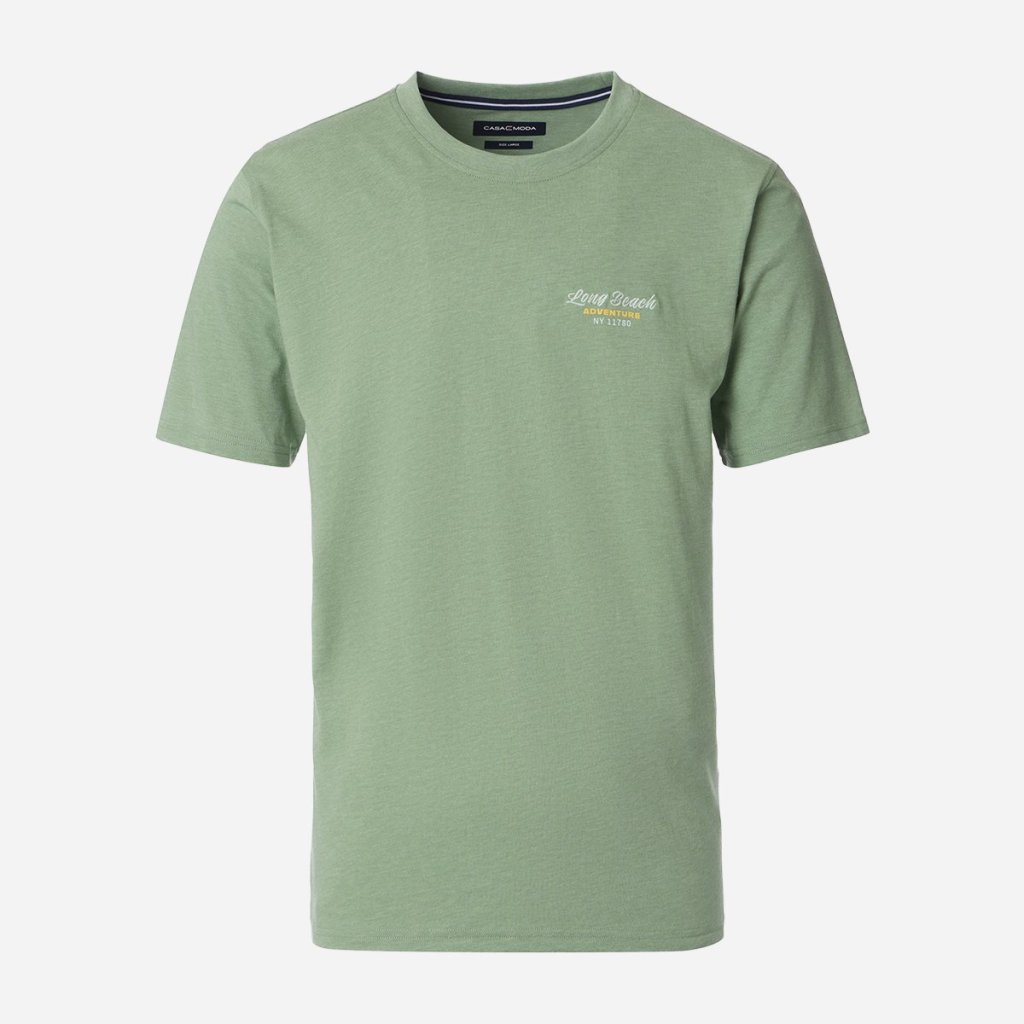Toto pánske tričko CASAMODA v zelenom odtieni je stelesnením uvoľneného, no upraveného vzhľadu. Vyrobené zo 100 % bavlny zodpovednej výroby, zaručuje komfort, priedušnosť a odolnosť aj pri každodennom nosení.