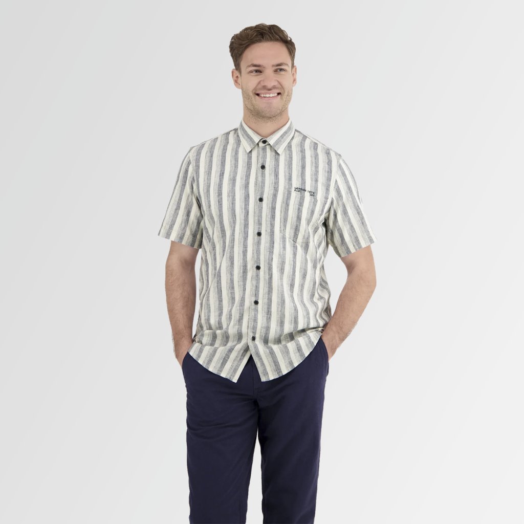 Pohodlná pánska košeľa, ktorú môžete kombinovať s tričkom alebo bez neho. Záleží iba na Vašom vkuse. Model meria 187 cm a oblieka veľkosť M.