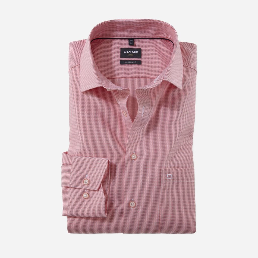 Ak má niečo stelesňovať nadčasovú eleganciu, potom je to práve korálová pánska košeľa OLYMP Luxor s jemným vzorom. Košeľa je v jemne zúženom strihu Modern fit, takže bude dobre sedieť mužom so športovejšou alebo štíhlejšou postavou, bez toho, aby obmedzovala v pohybe. Golier typu Global Kent je všestranne použiteľný – bez problémov si rozumie s kravatou aj bez nej.