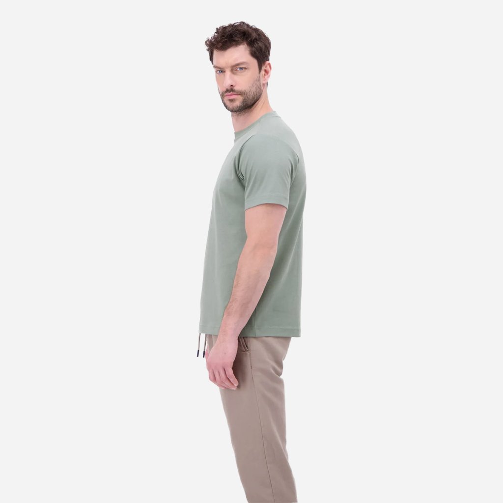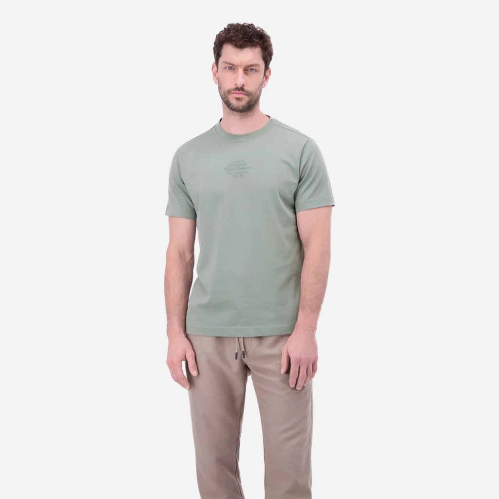 Pánske bavlnené tričko s mini potlačou na hrudi a klasickým okrúhlym výstrihom. Pohodlný strih a pevný materiál riešia problém vyťahaných a nepohodlných basic tričiek.