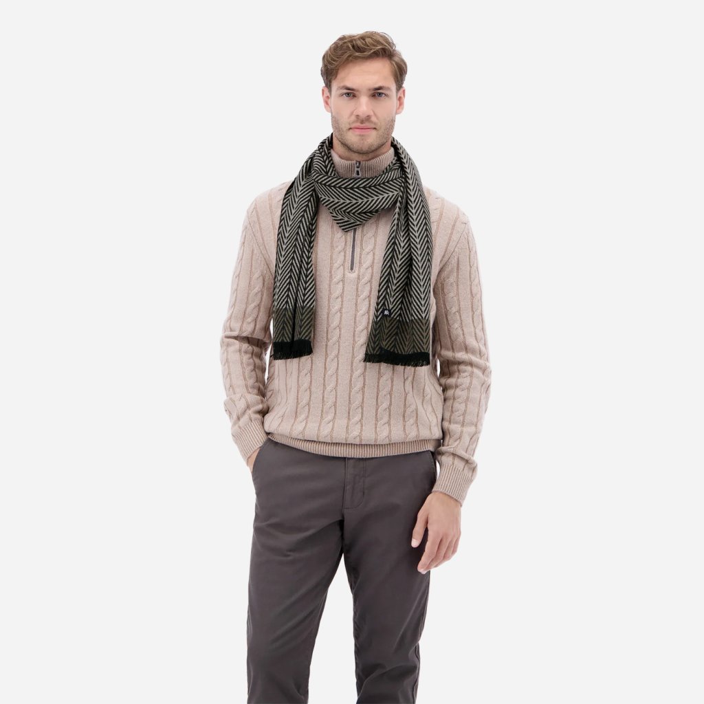 Šál LERROS v nadčasovom rybom vzore (herringbone) patrí medzi doplnky, ktoré nikdy nevyjdú z módy. Je vyrobený z jemnej syntetickej priadze, ktorá je mäkká na dotyk, hrejivá a komfortná počas jesenných aj zimných dní.