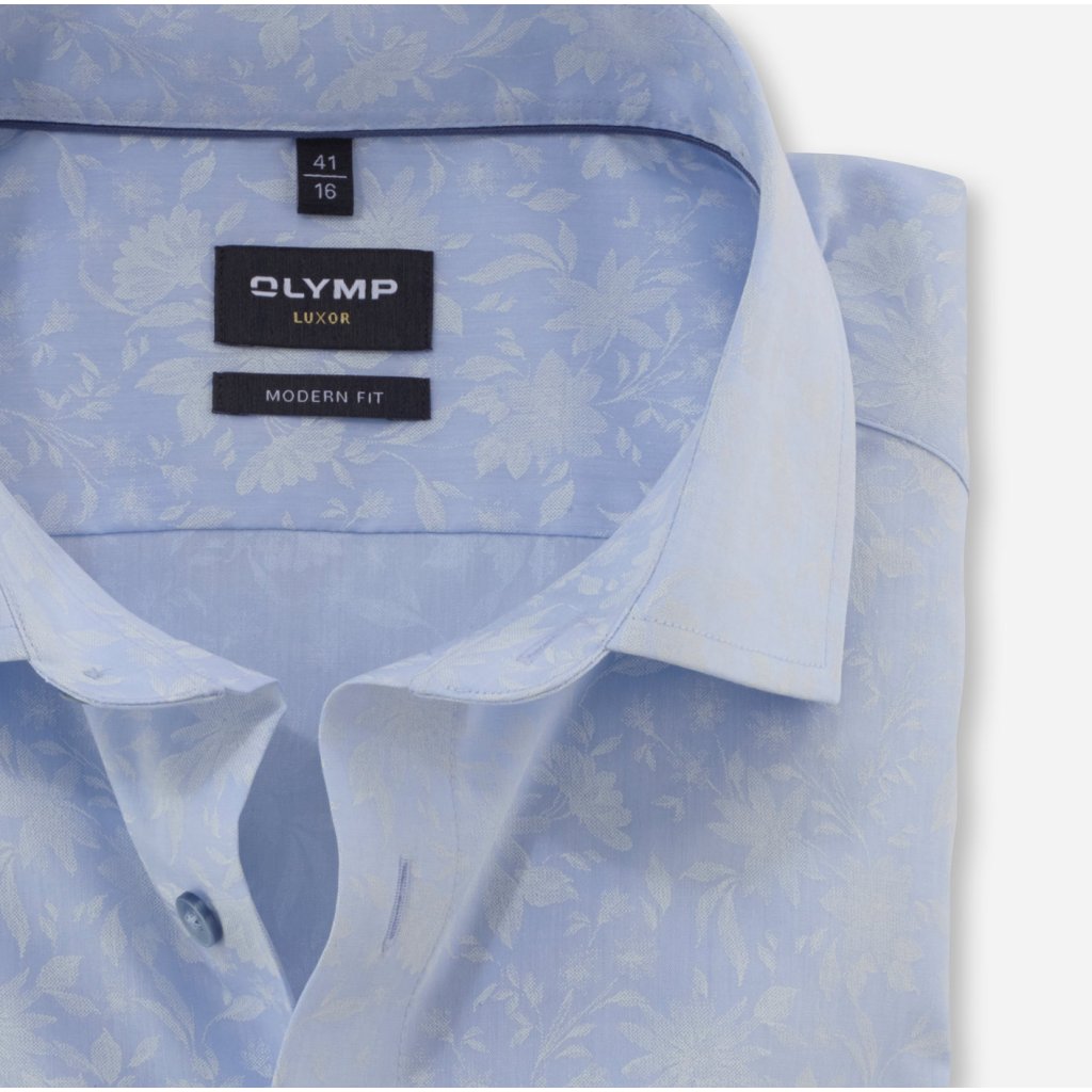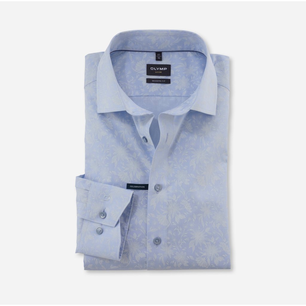 Táto štýlová pánska košeľa OLYMP Luxor Modern Fit je ideálna na slávnostné príležitosti. Vyrobená z jemnej a hladkej bavlny, ponúka maximálny komfort a elegantný vzhľad. Svetlomodrý pastelový odtieň s bielym kvetinovým vzorom pôsobí sofistikovane a dokonale doladí váš outfit. Klasický Global Kent golier pridáva na elegancii a univerzálnosti.